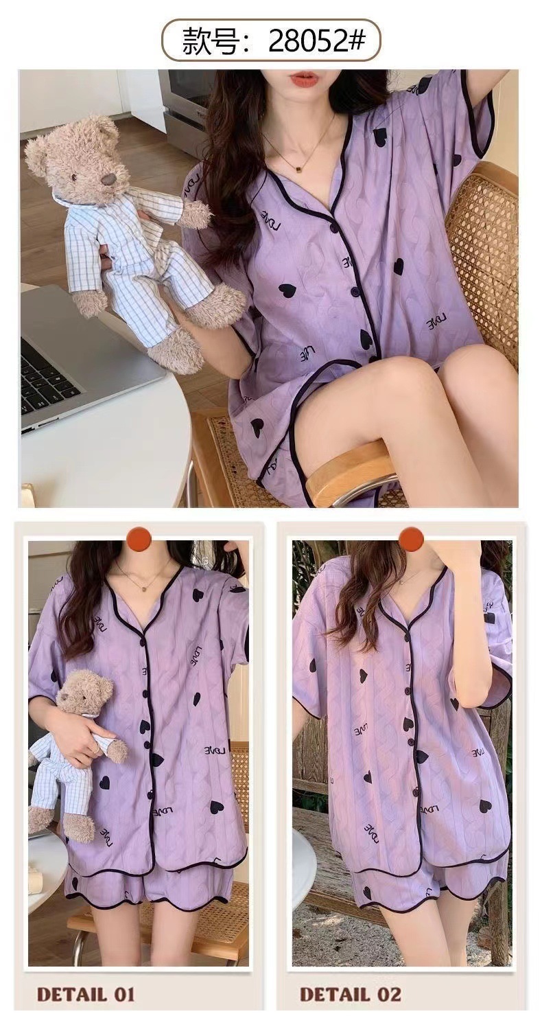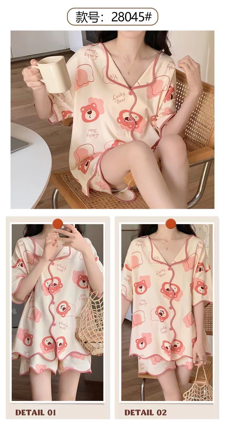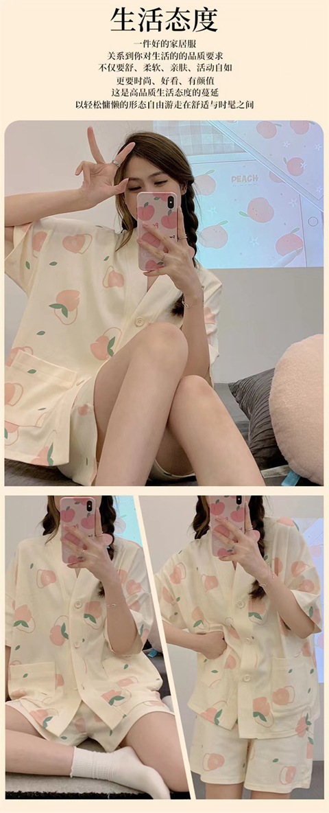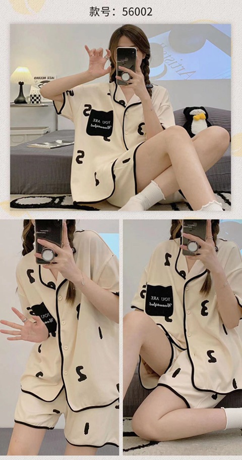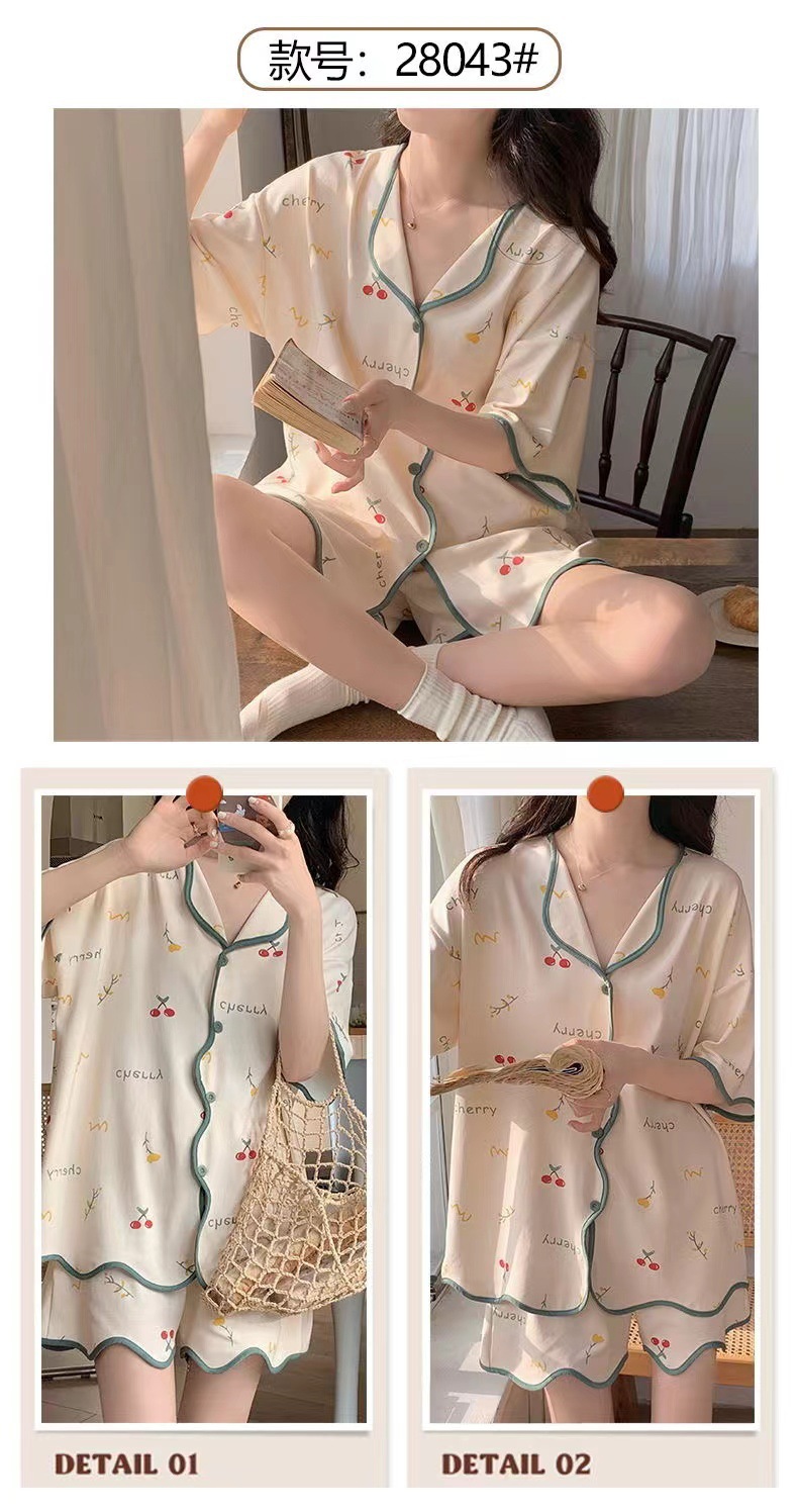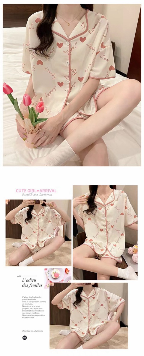 【清凉夏季必备】甜美可爱的女式睡衣两件套装。舒适材质,透气性佳,不粘腻不紧绷,让你舒舒服服地睡个好觉。开衫设计,穿脱方便,时尚百搭。无论是在家休息、聚会还是度假旅行,都是Z佳选择。