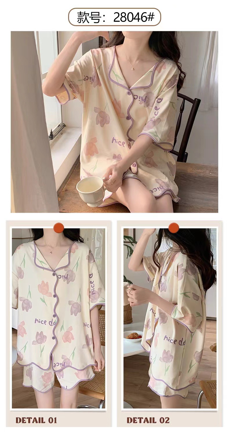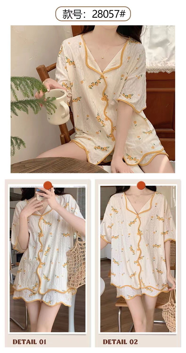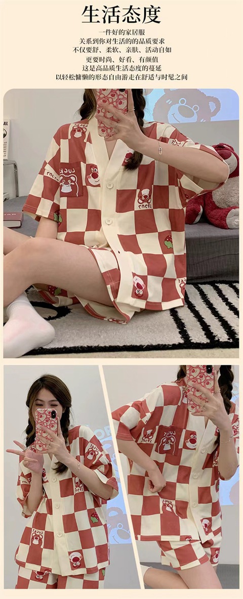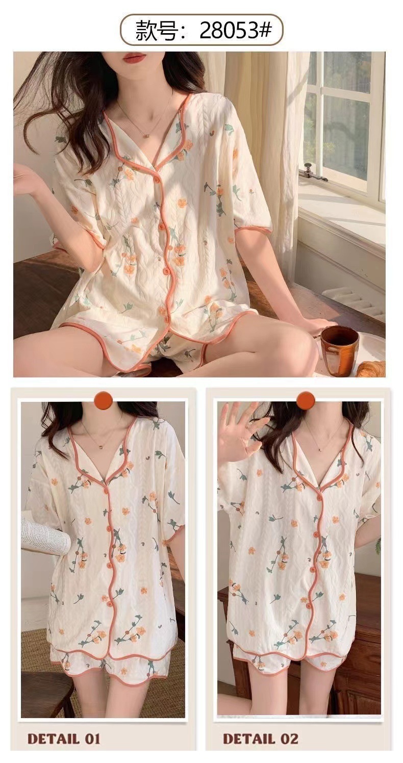 【清凉夏季必备】甜美可爱的女式睡衣两件套装。舒适材质,透气性佳,不粘腻不紧绷,让你舒舒服服地睡个好觉。开衫设计,穿脱方便,时尚百搭。无论是在家休息、聚会还是度假旅行,都是Z佳选择。