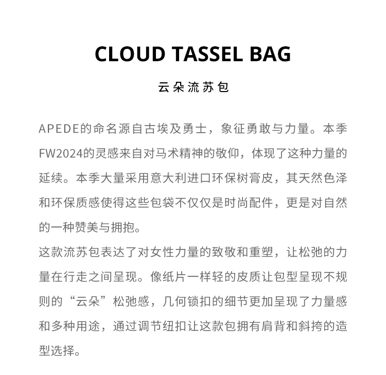 【秋冬新款】品牌直发 APEDE MOD 几何锁扣头层牛皮云朵流苏包单肩斜挎包