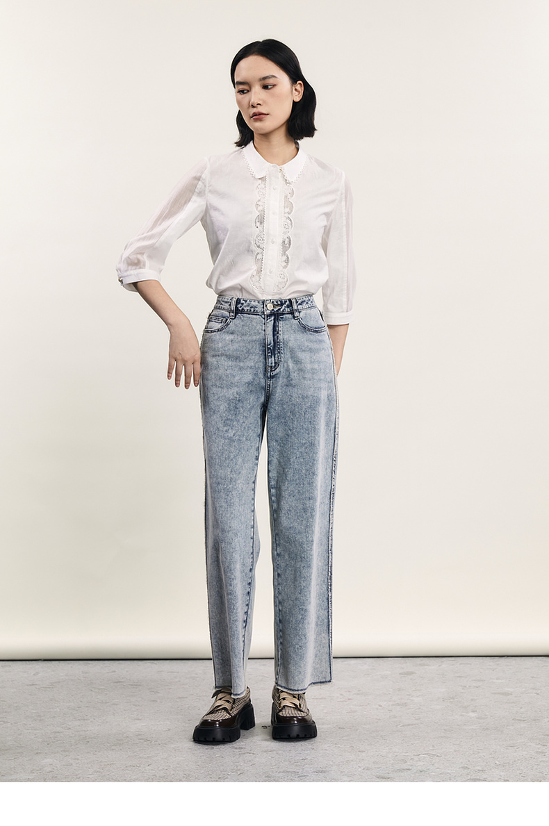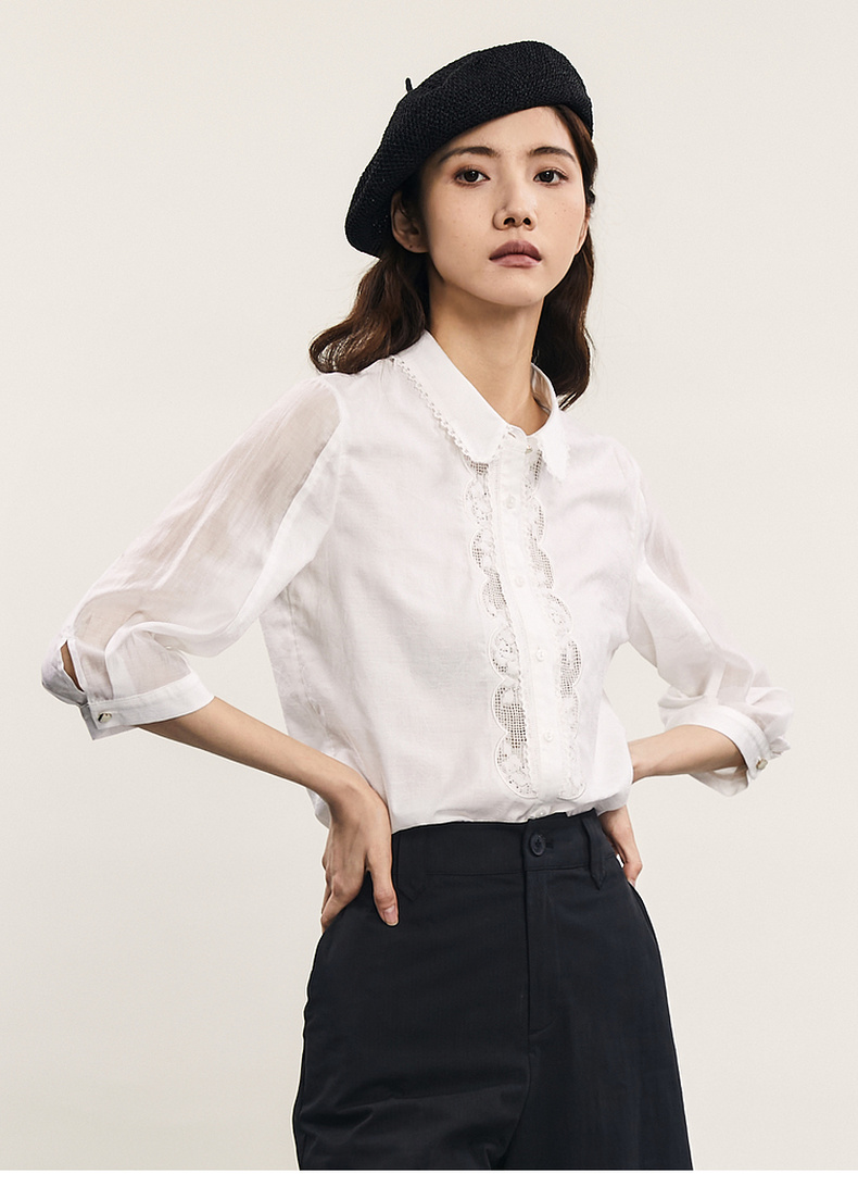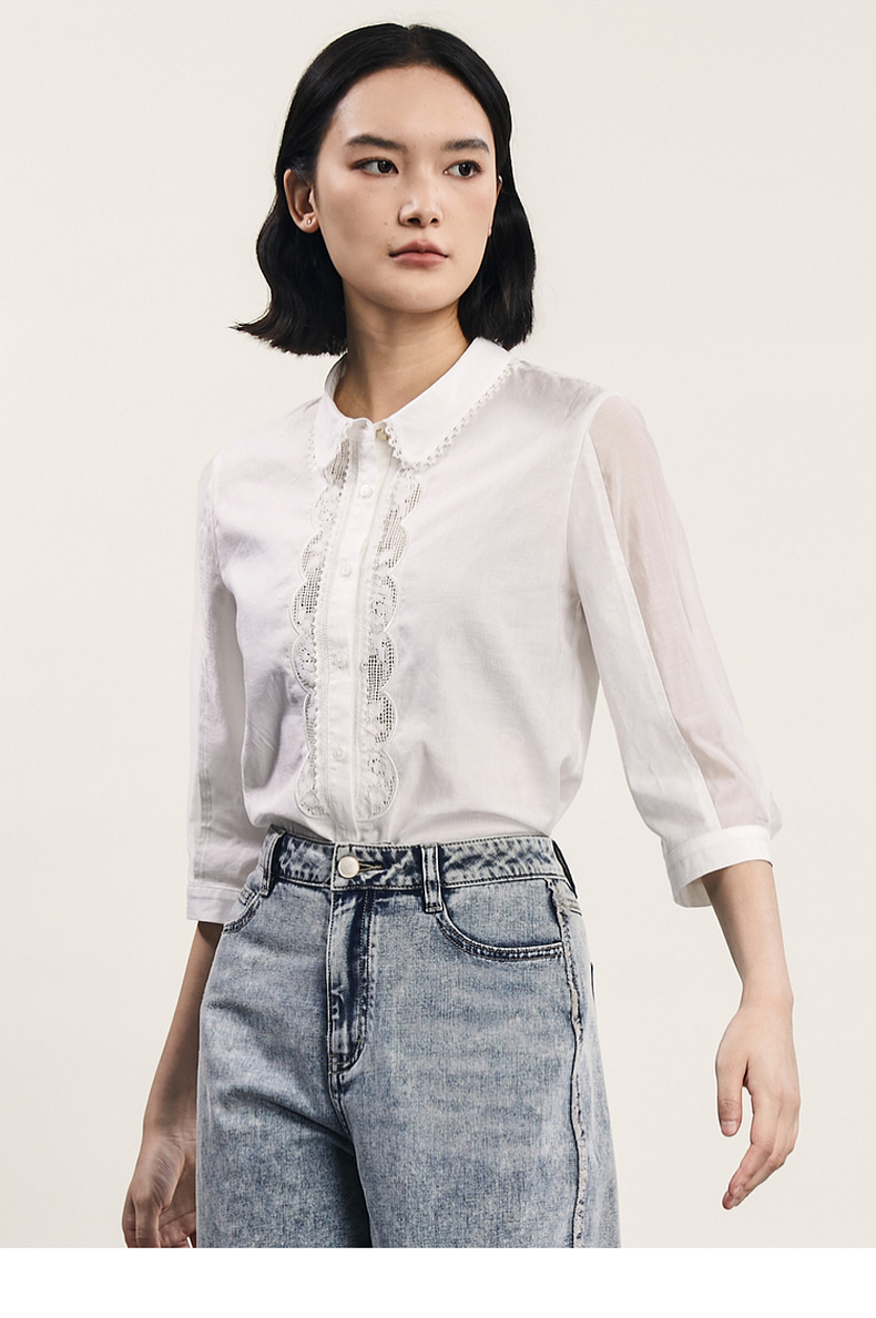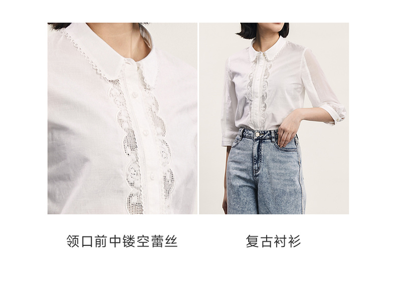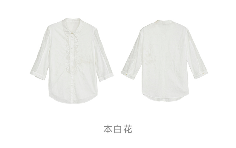 谜底白衬衫七分袖女2024年夏季新品通勤风提花宽松衬衣242MC0668