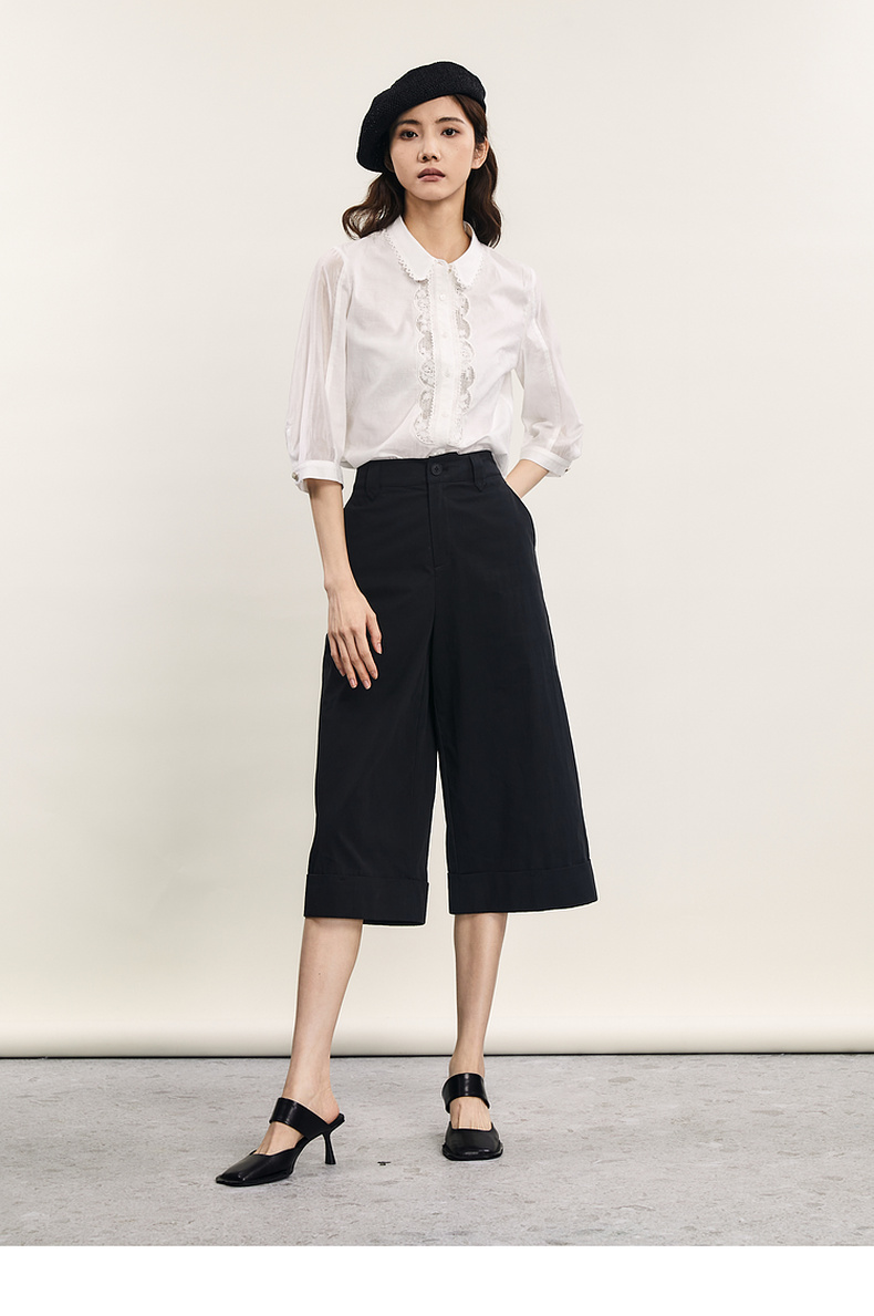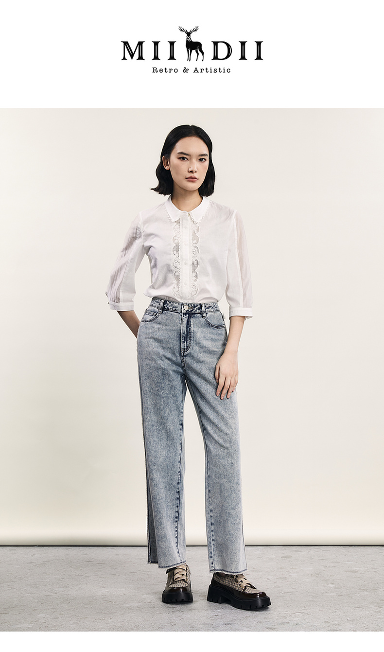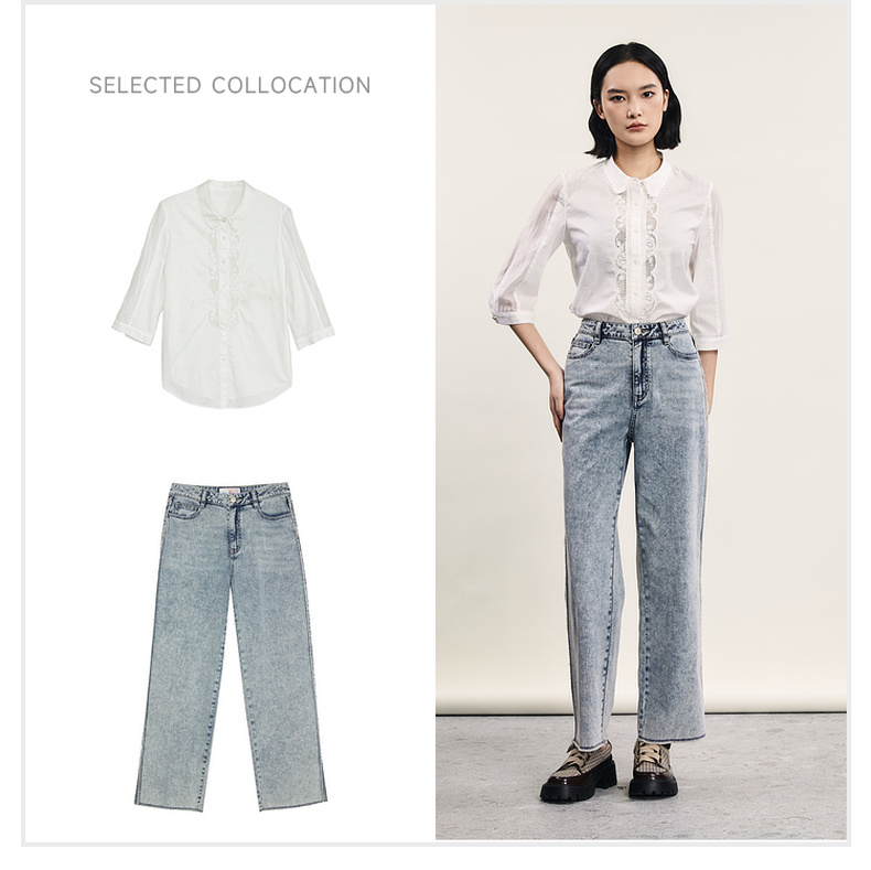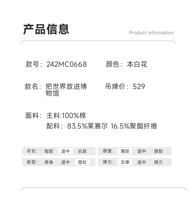 谜底白衬衫七分袖女2024年夏季新品通勤风提花宽松衬衣242MC0668