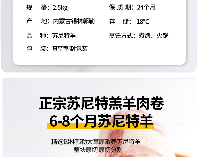 【自营】【地标产品专供】正宗锡盟苏尼特羔羊肉卷 5斤装