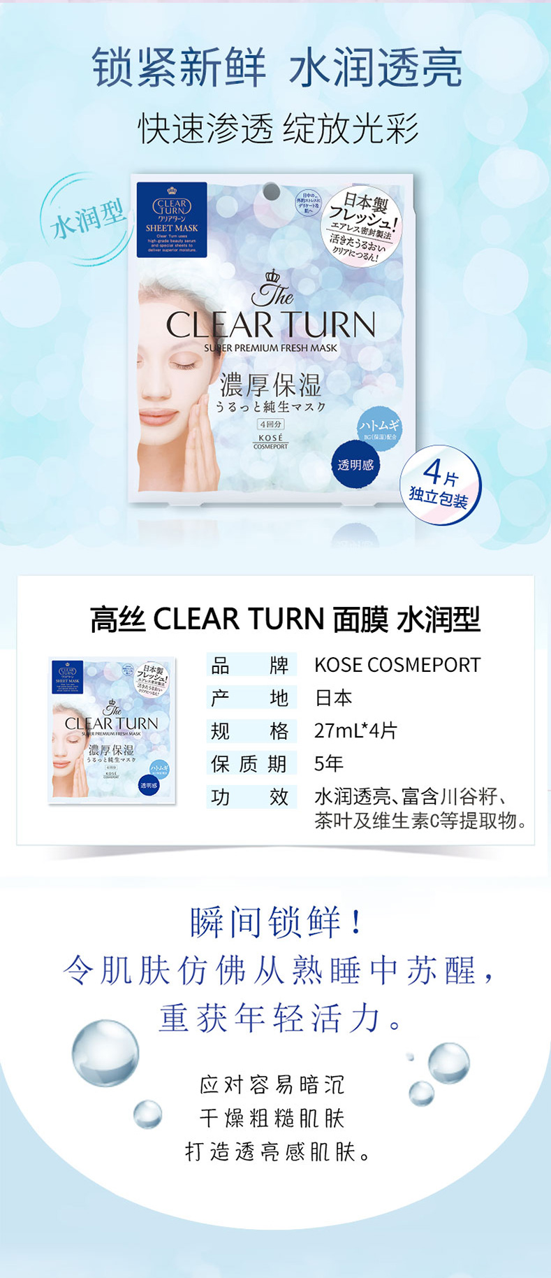 高丝 CLEAR TURN面膜 保湿/水润/弹力光泽