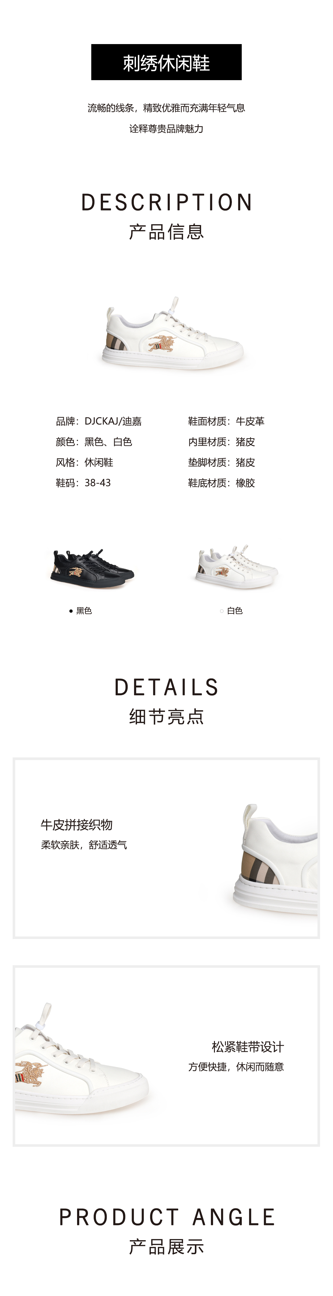 豪麟名鞋奥莱迪嘉男鞋休闲鞋牛皮革DJMMO51MX202白色 原价1660元
