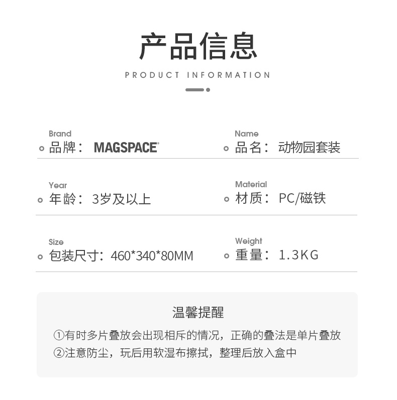 MAGSPACE摩可立水晶磁力片83片动物园套装