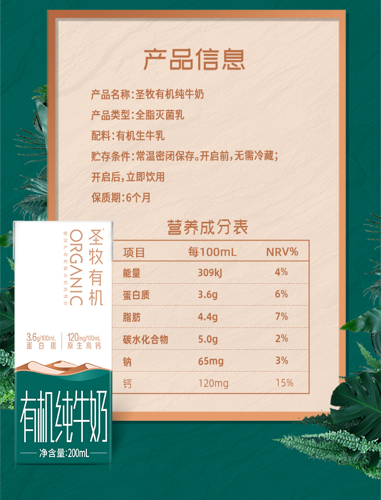 圣牧沙漠有机纯牛奶精选礼盒装200ml*10盒/箱 美味营养 全家乐享