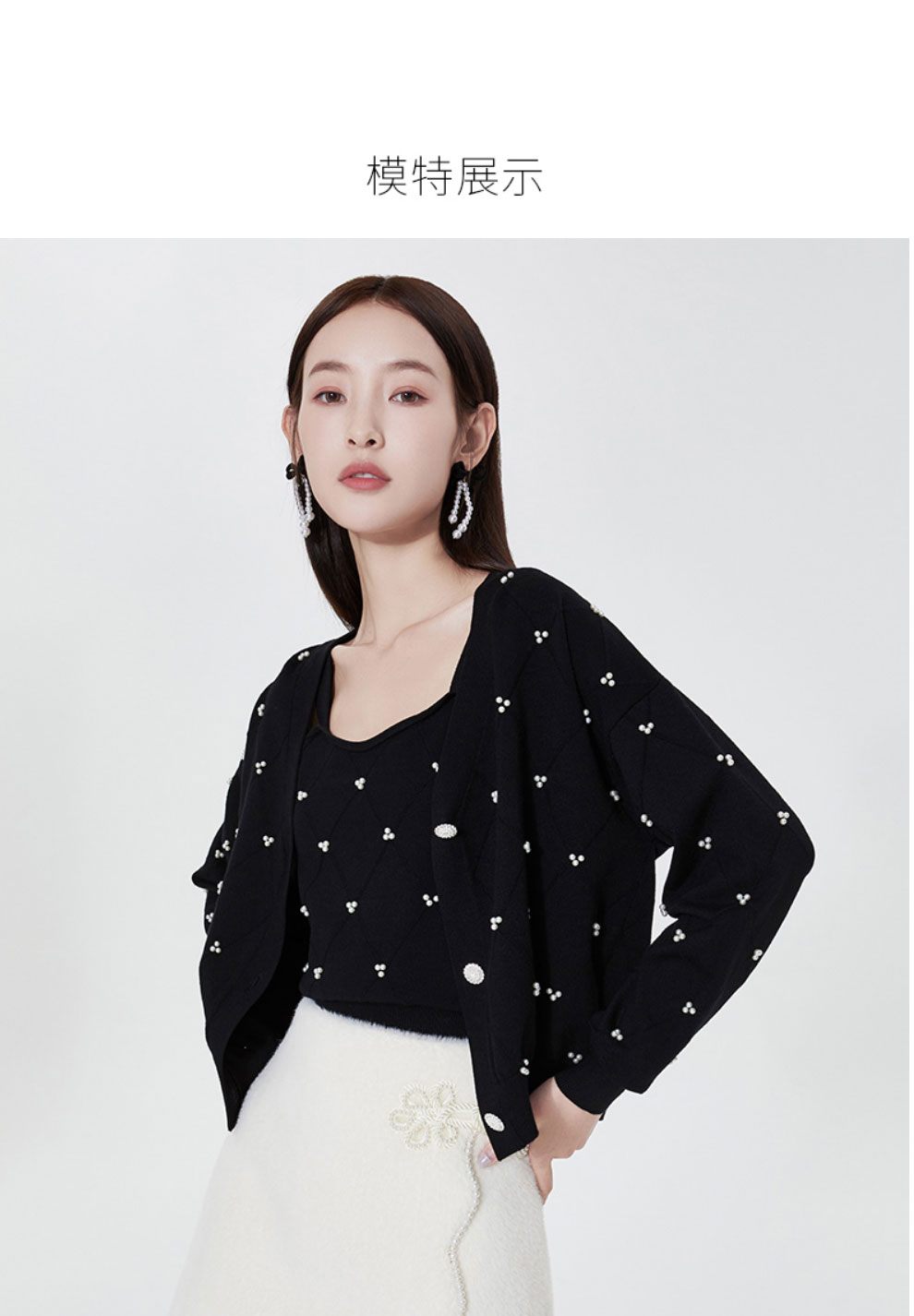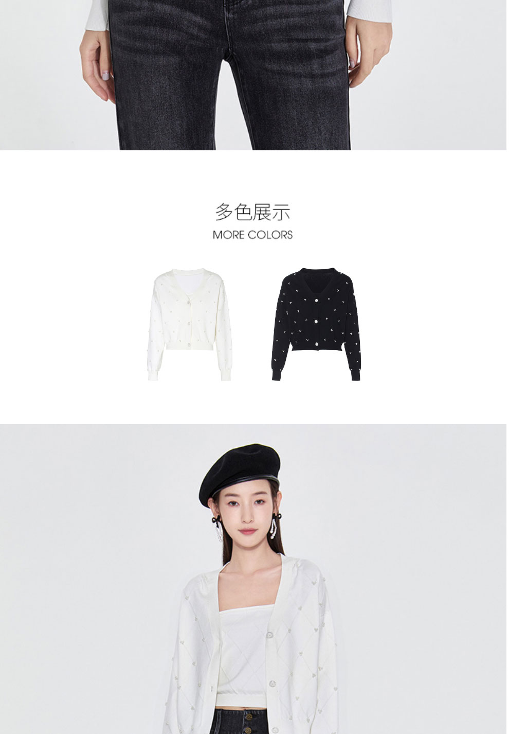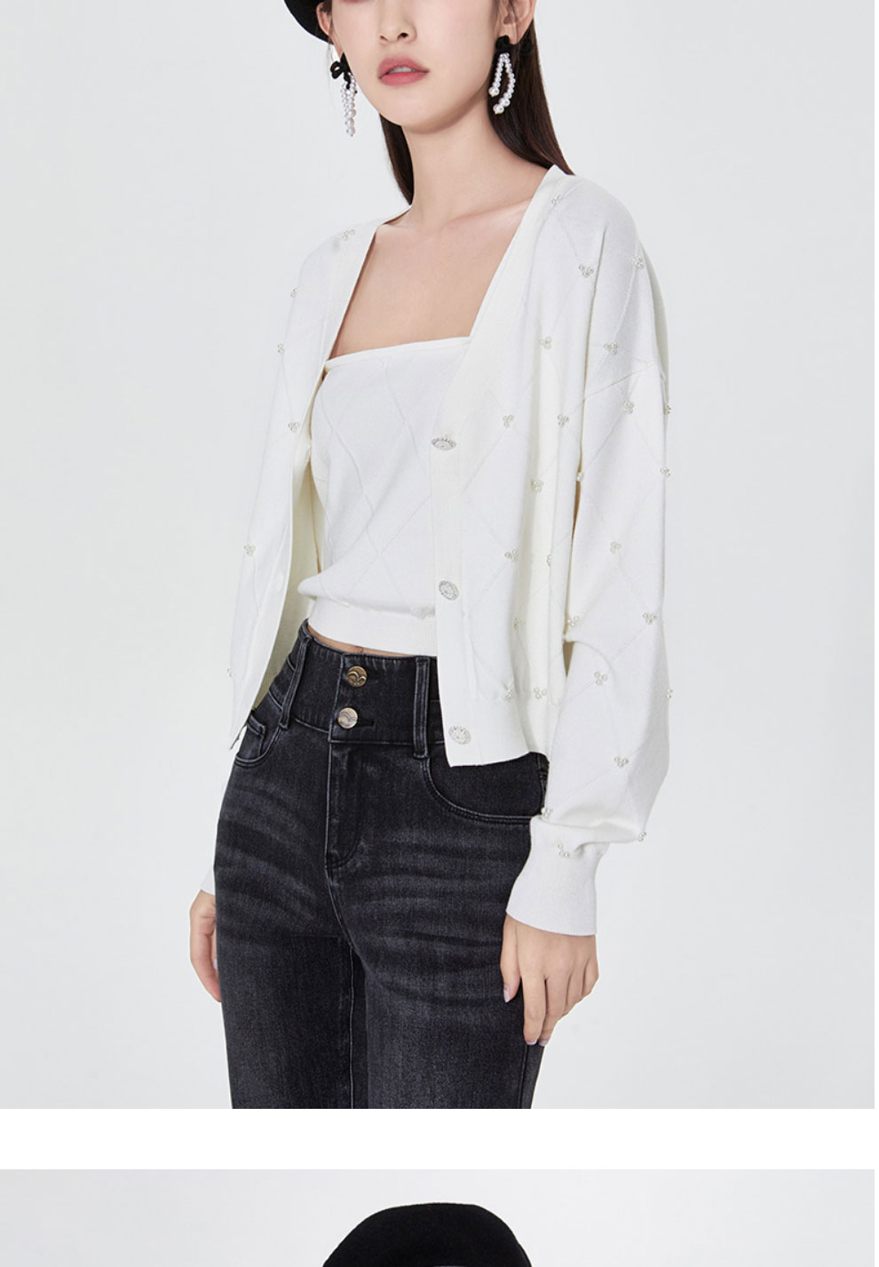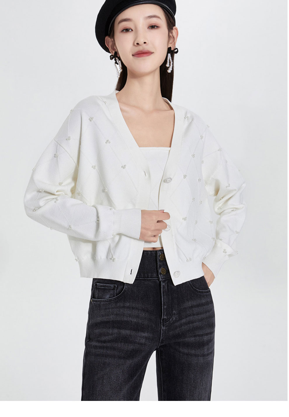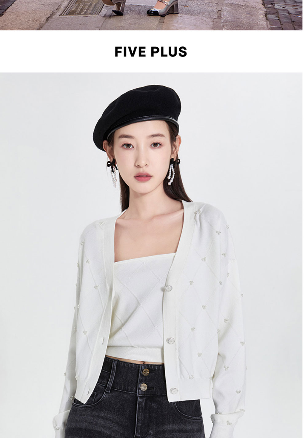 FIVE PLUS2022新款女春装宽松V领针织开衫女肌理感外套配吊带打底2WN1033010