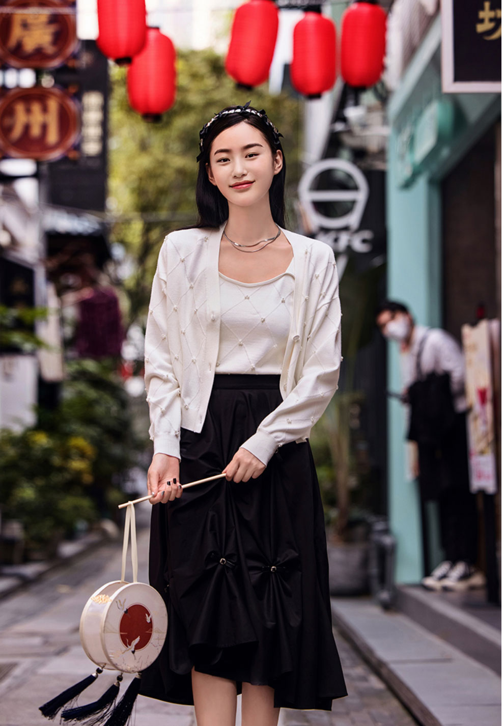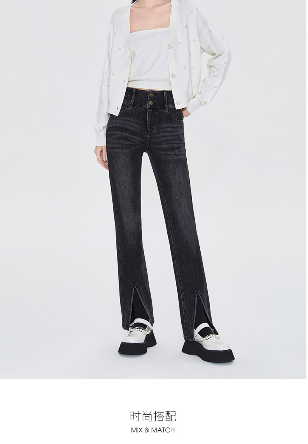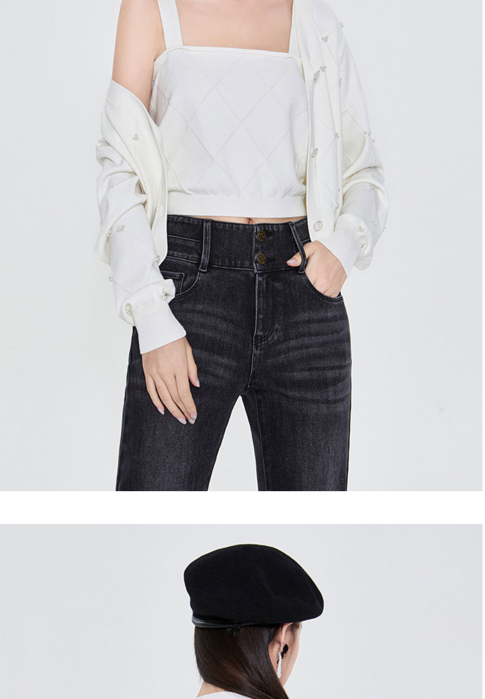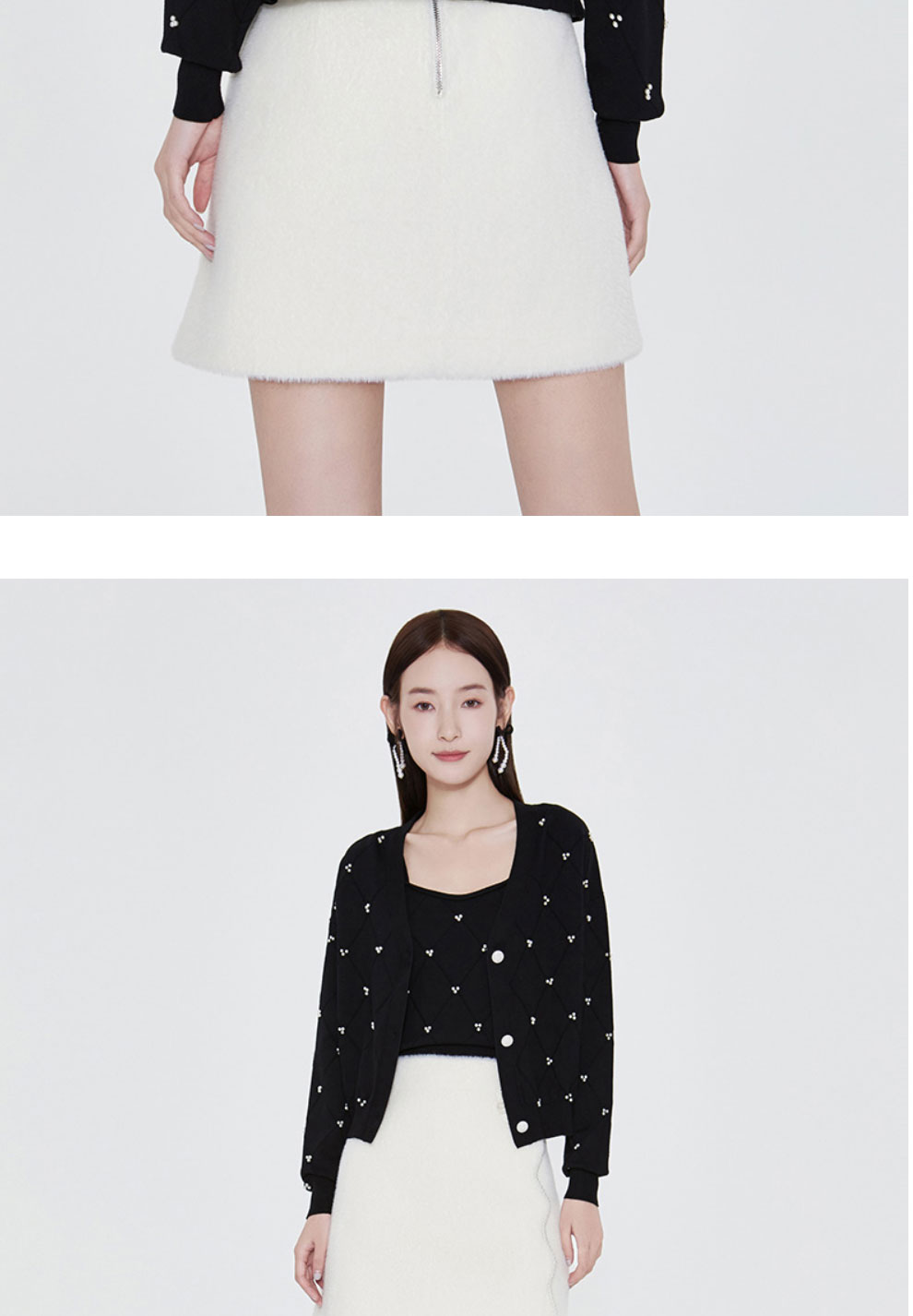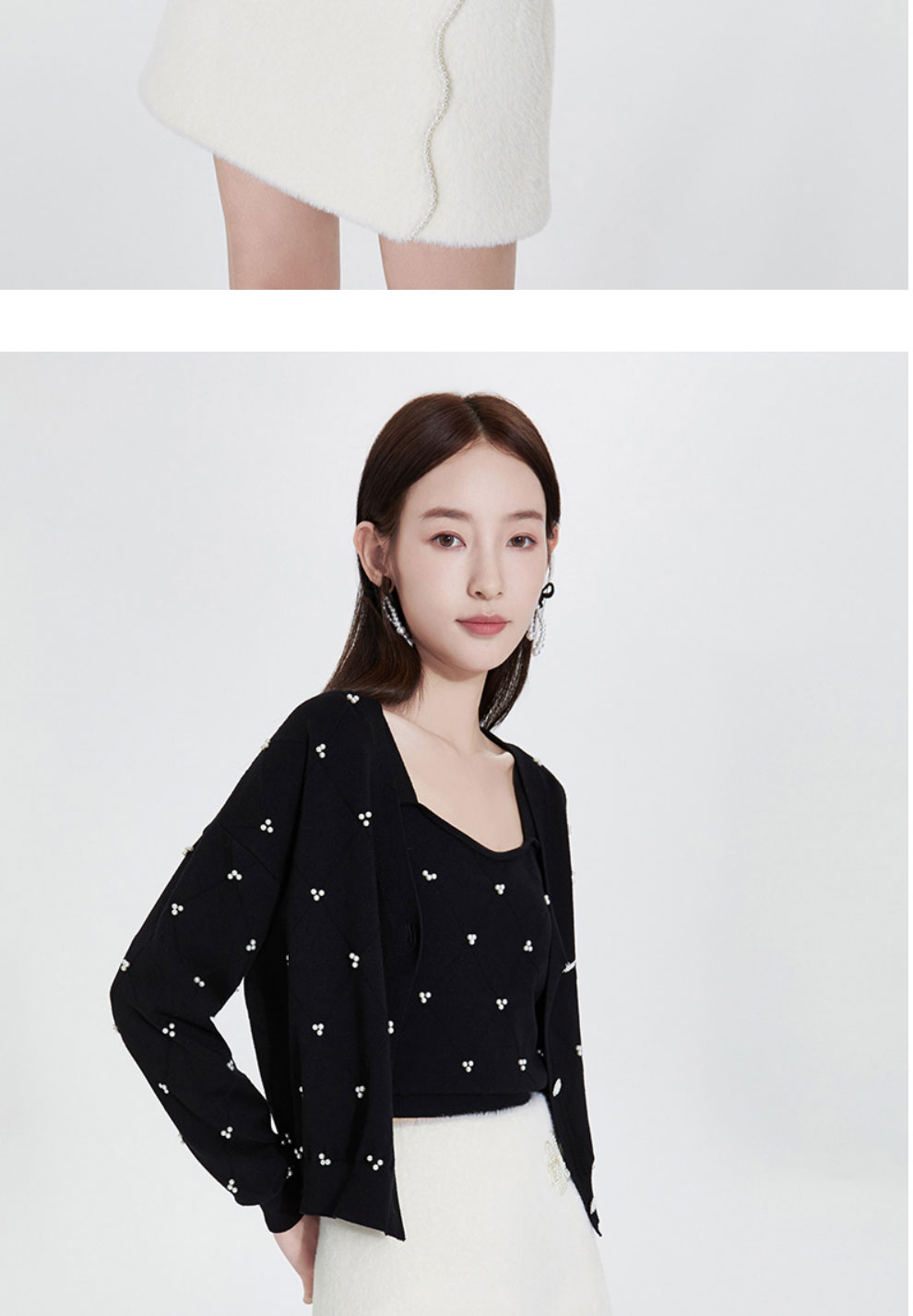 FIVE PLUS2022新款女春装宽松V领针织开衫女肌理感外套配吊带打底2WN1033010