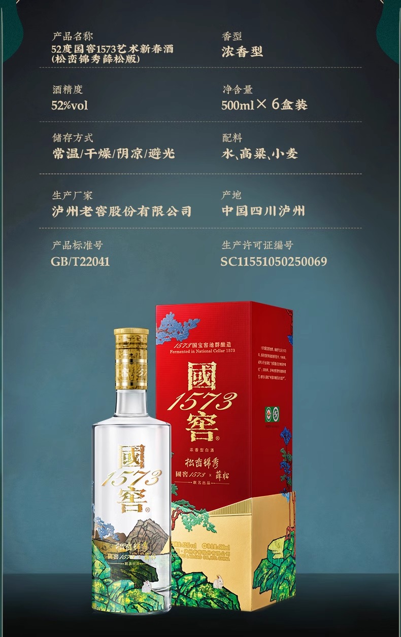 52度 国窖1573 艺术新春酒(松峦锦秀薛松版)500ml 泸州老窖官方旗舰店