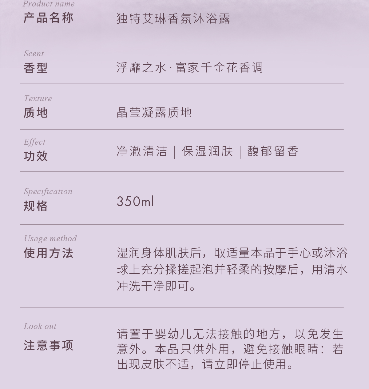 Dear lrean独特艾琳浮靡之水香氛沐浴露350ml(Eteecy联名款)【YW】