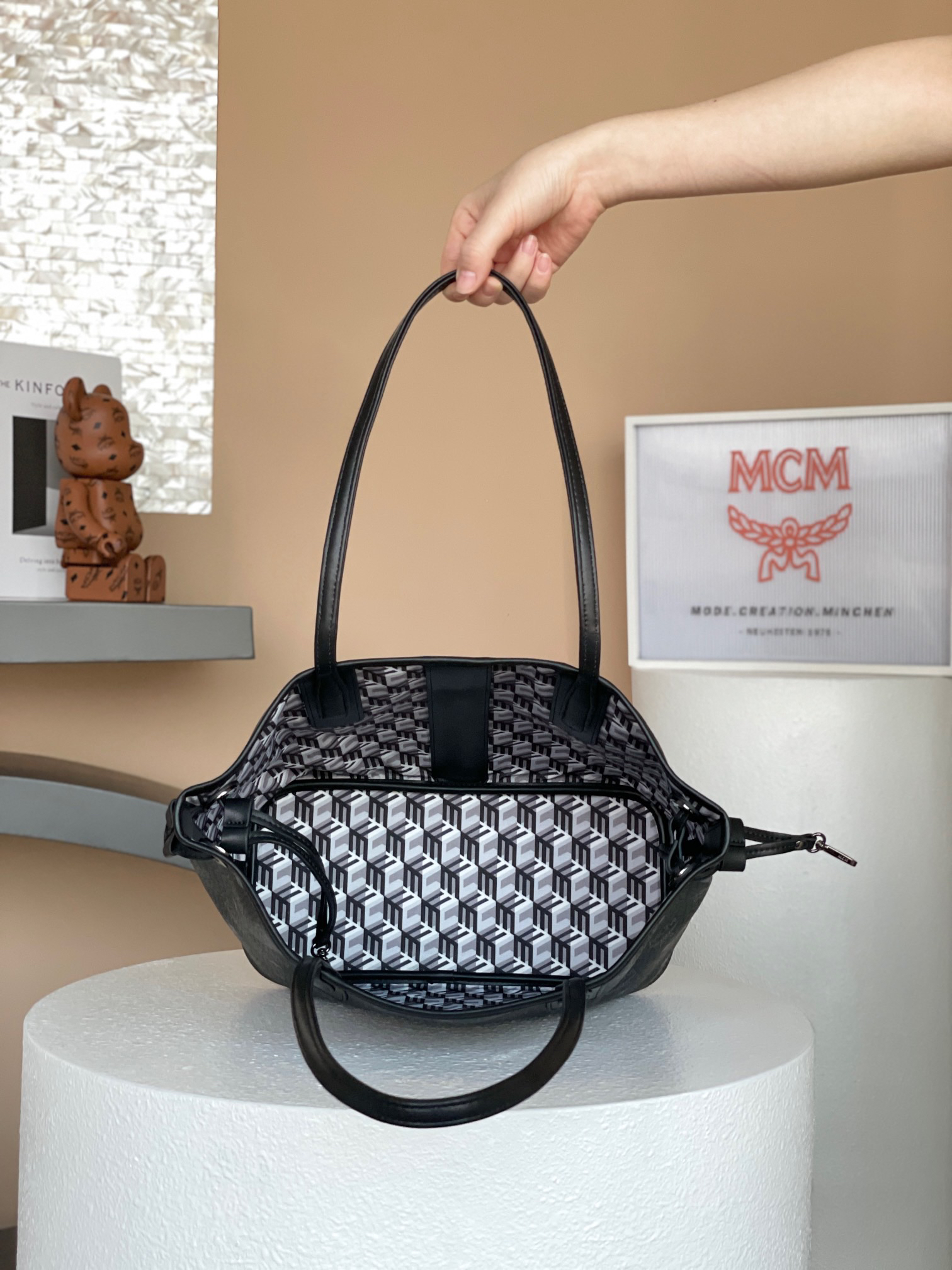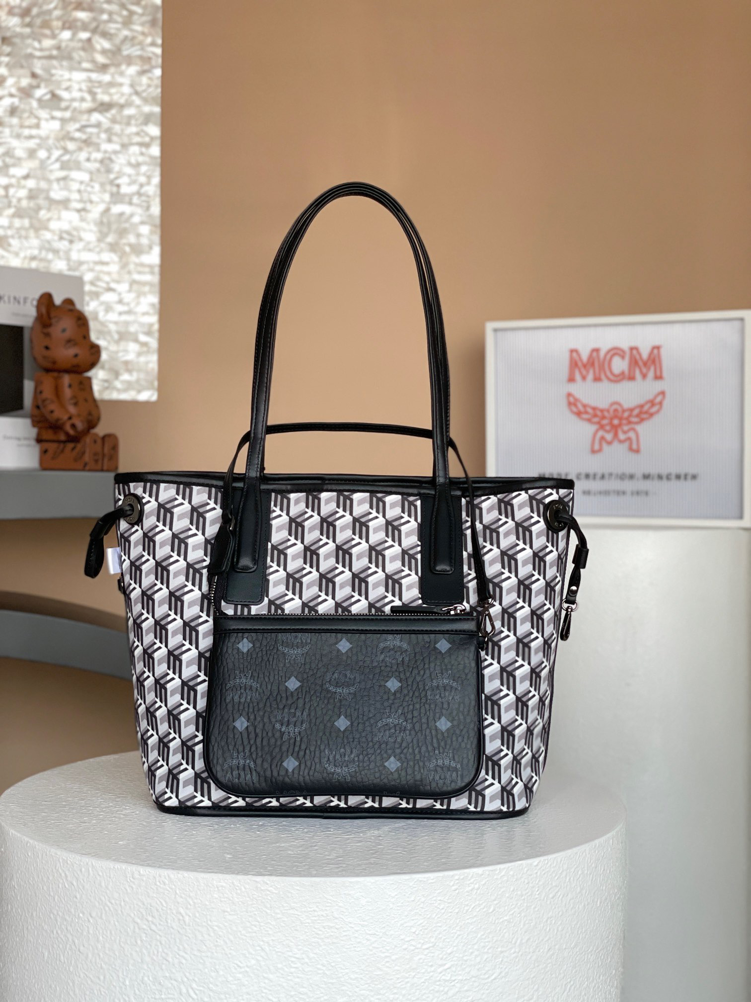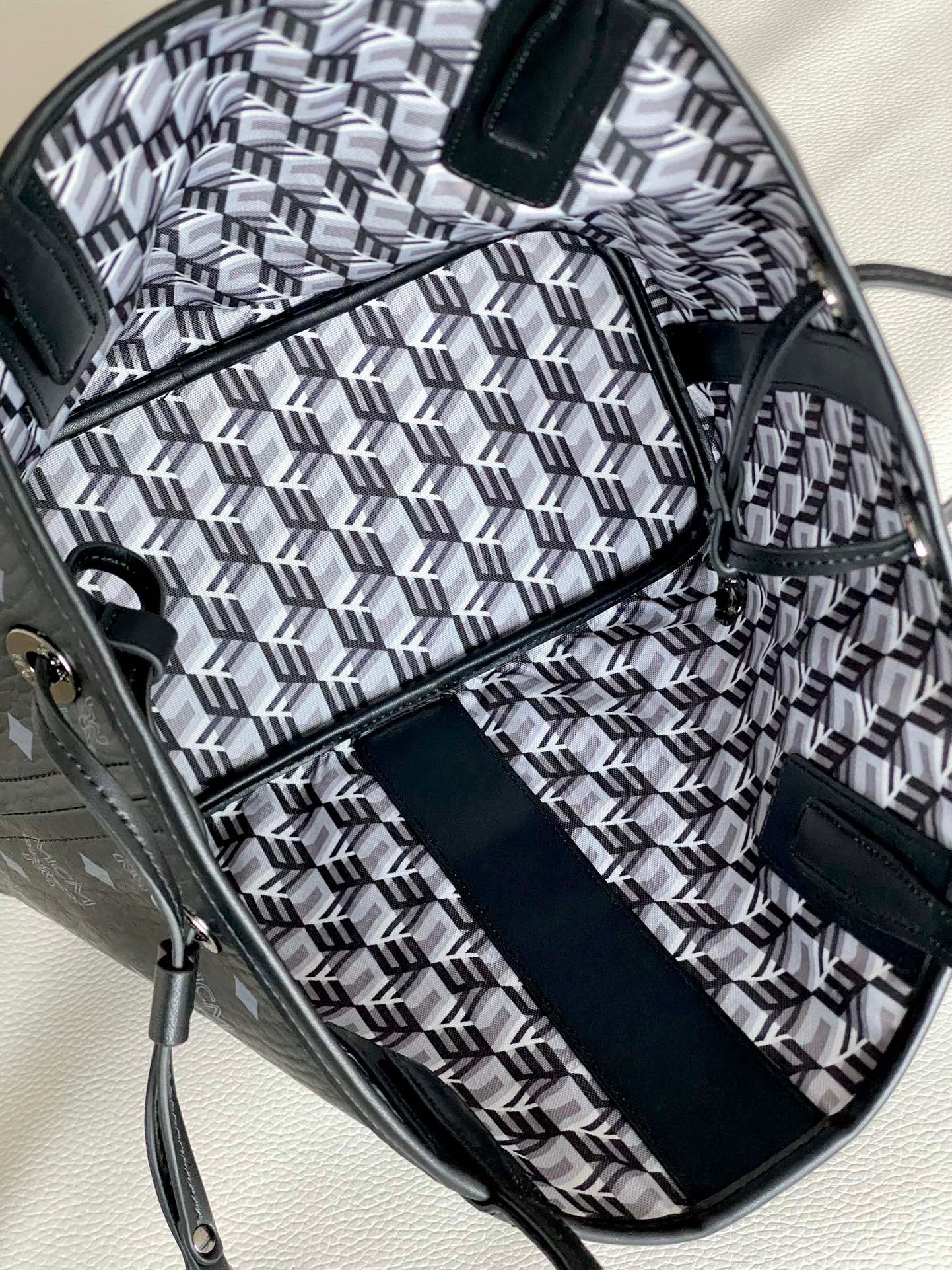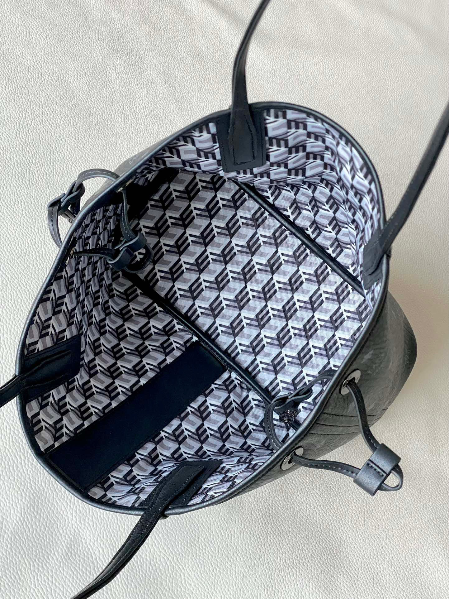 这是一款二合一的标志性单品。小巧的Liz包袋采用双面Cubic棉质帆布设计,展现了品牌的多维特性。购物袋内部则隐藏着一只可拆卸的拉链手拿包,可作为经典的肩背包单独使用。