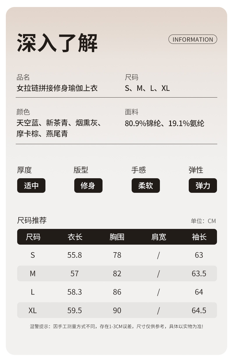 【2026年新款】Mylyis女拉链拼接修身瑜伽上衣56302 触感清凉,柔软亲肤,显瘦有型