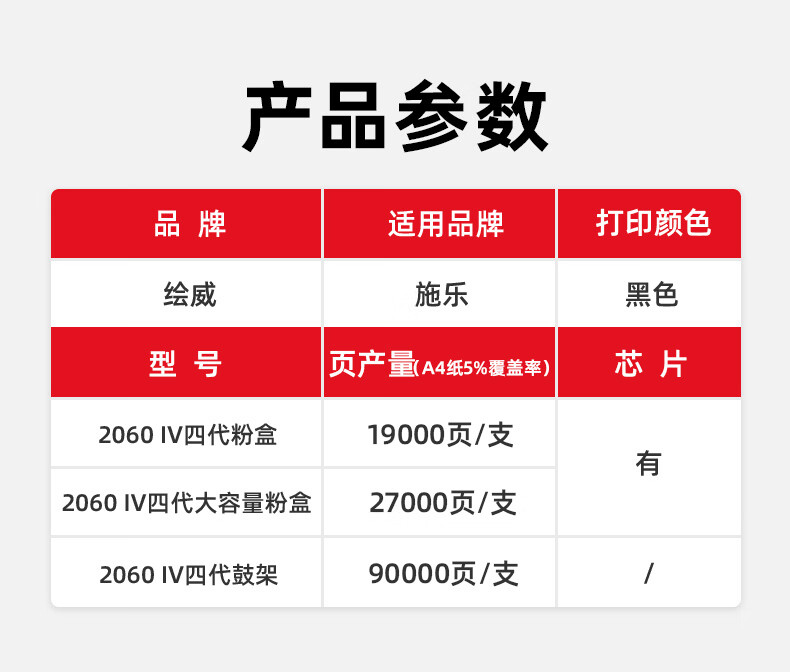 绘威2060大粉盒 IV四代、2060鼓架(含显影仓) IV四代 、2060粉盒 V五代、3208d粉盒、4070粉盒(IV四代)、4070鼓架(IV四代)、4070粉盒(V五代)