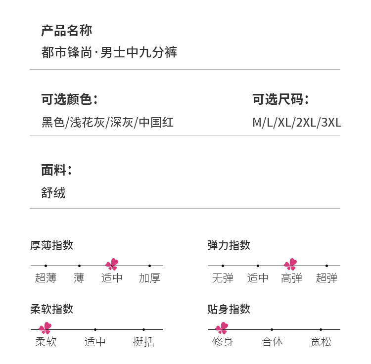 都市丽人都市锋尚基础系列舒暖负5度至5度男士中九分裤舒绒中单层裤打底裤FL24A2