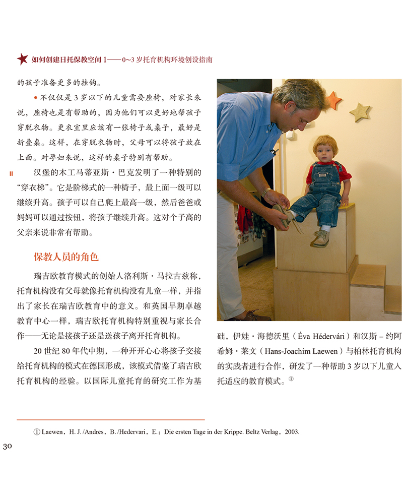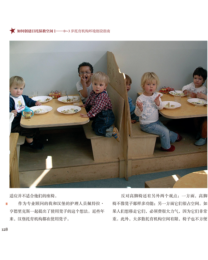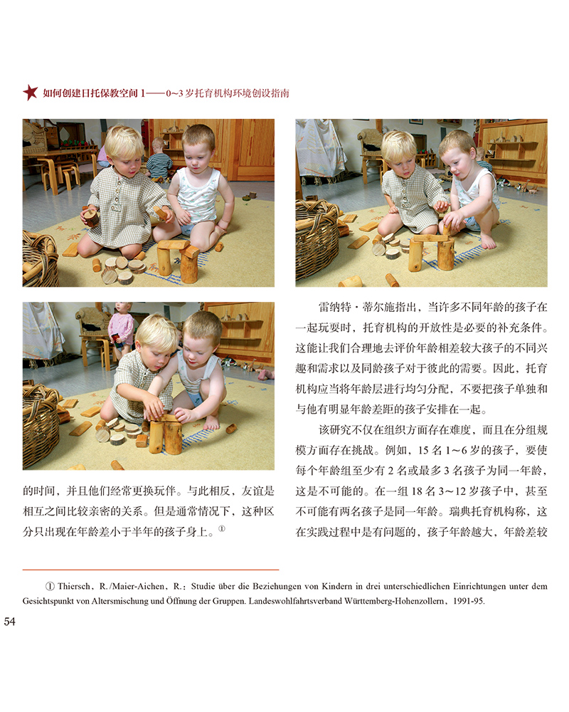 本书作者安吉丽卡·冯·德·贝克将托育机构空间布置与针对3~6岁幼儿的汉堡空间布置理念相结合,并在实践中延展了由舍费尔提出的教育方法。