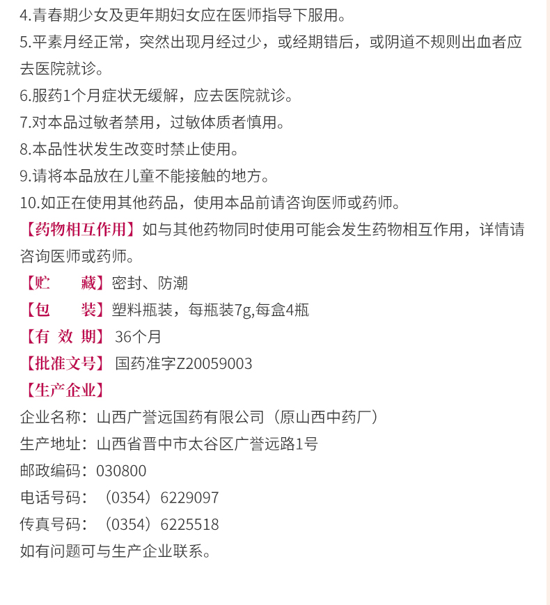 广誉远定坤丹水蜜丸7g*4瓶/盒