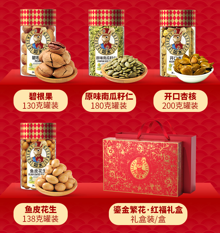 如水鎏金繁花·红福礼盒1508g【年货】KY