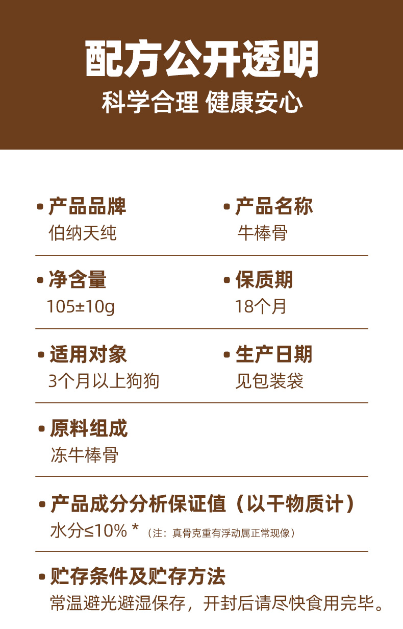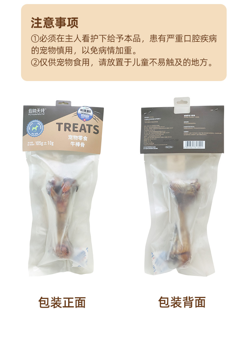 伯纳天纯狗狗零食风干牛棒骨狗磨牙棒宠物中大型犬专用洁齿牛骨头