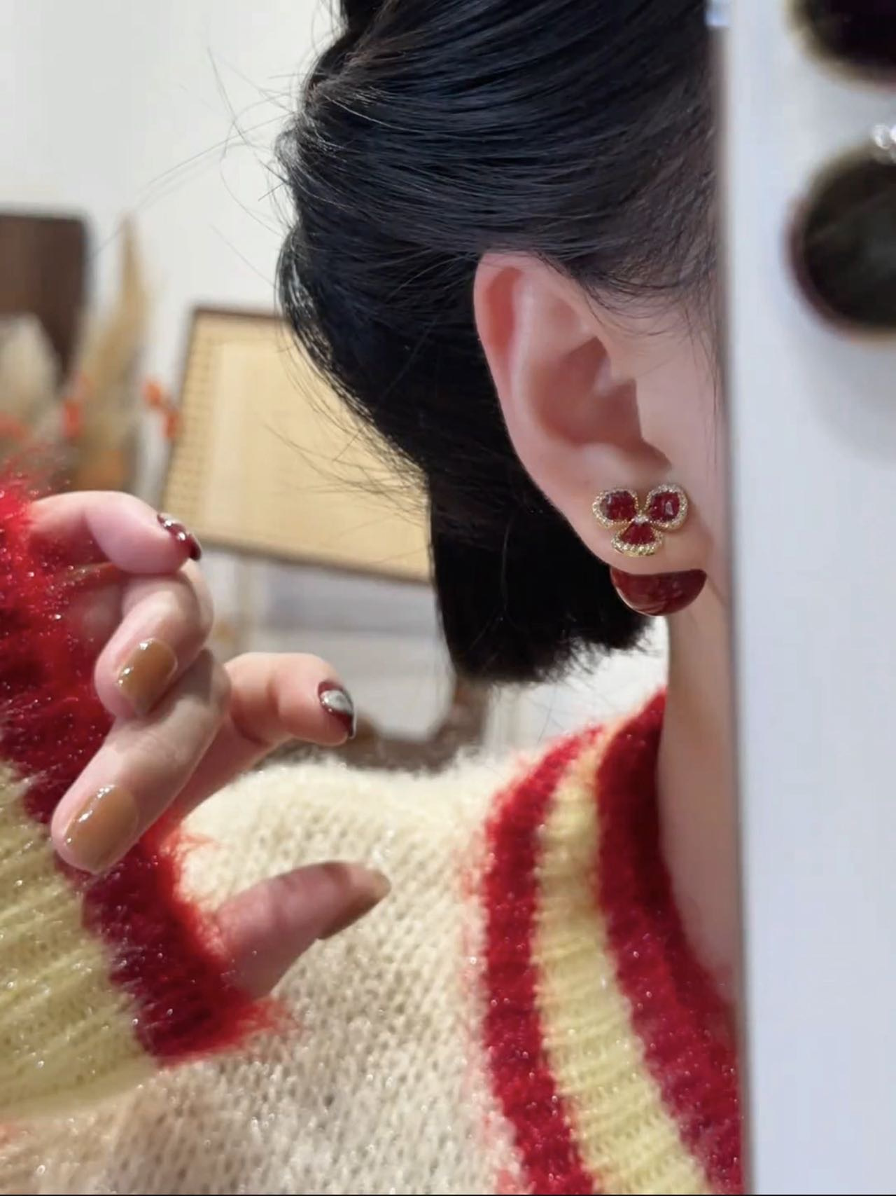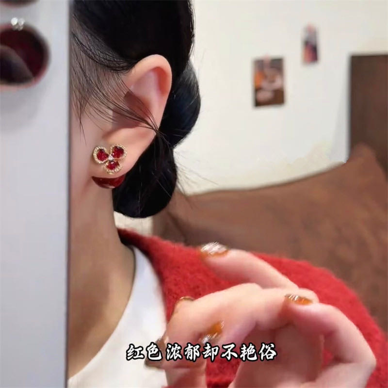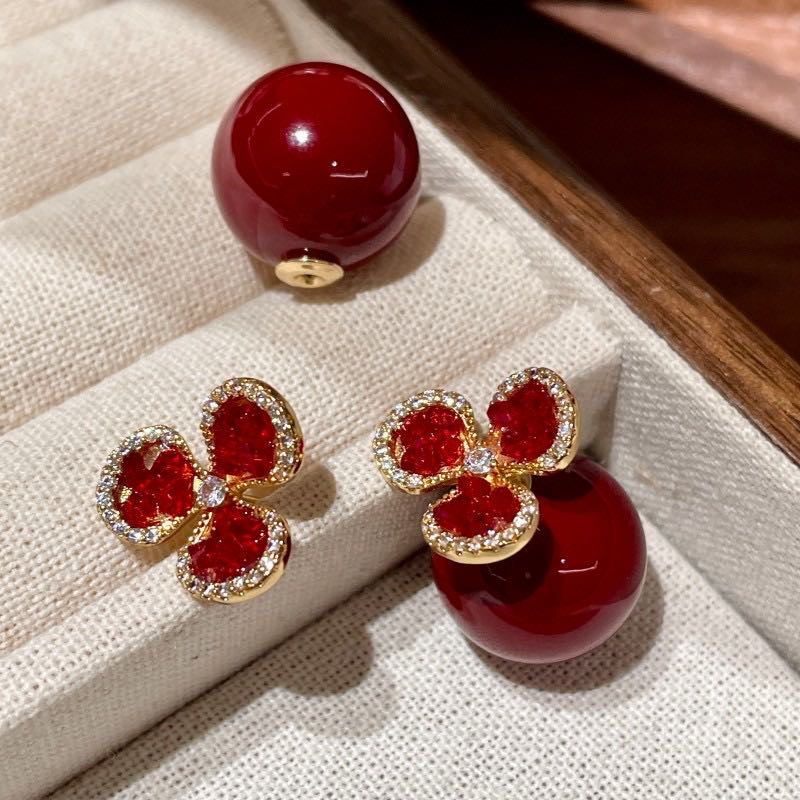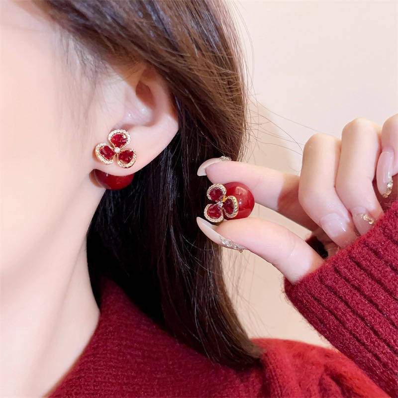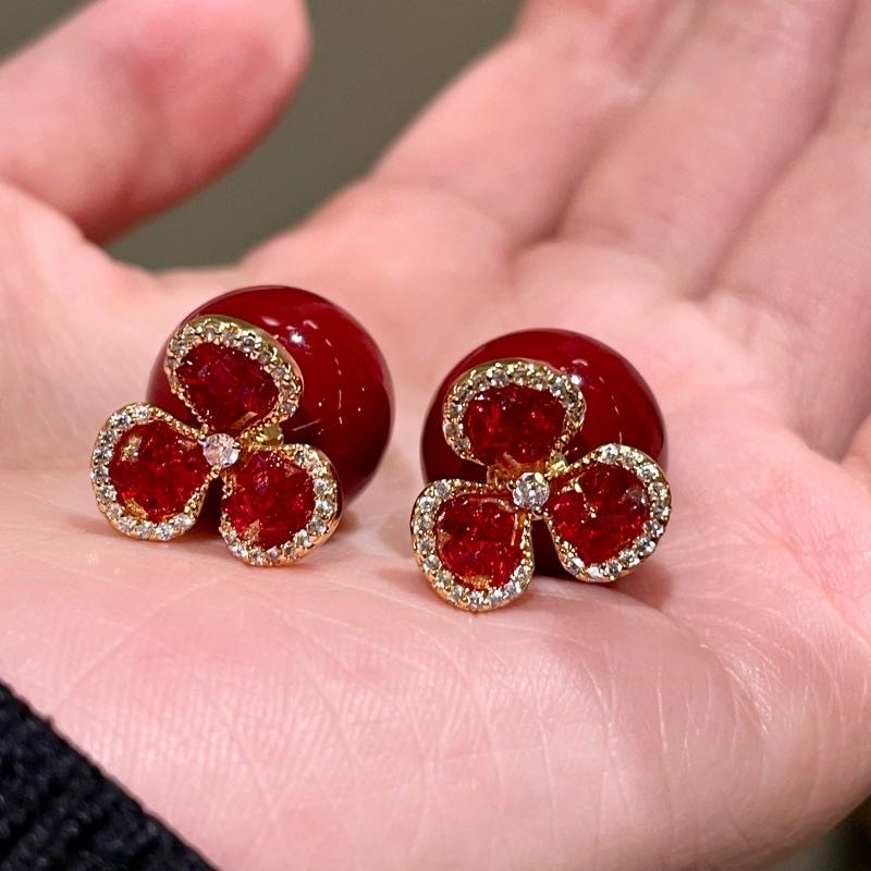 救命啊!这对【红珍珠三叶草耳钉】把新年贵气 焊在耳钉上了!