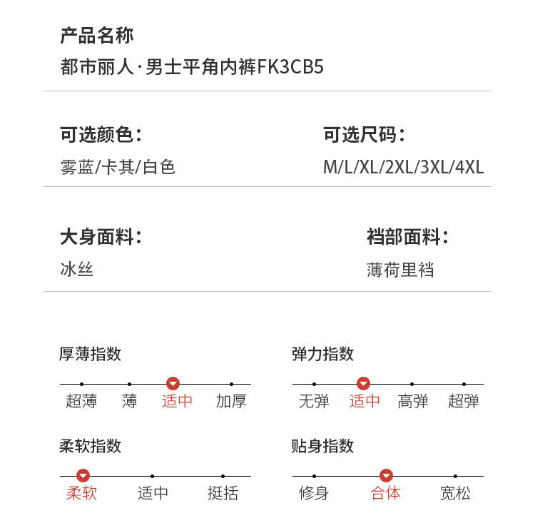 都市丽人都市锋尚日常休闲网眼冰丝平角裤男士内裤FK3CB5