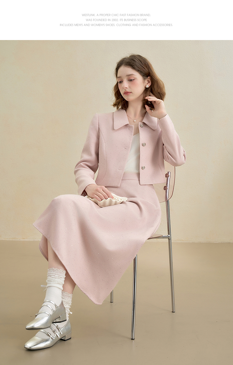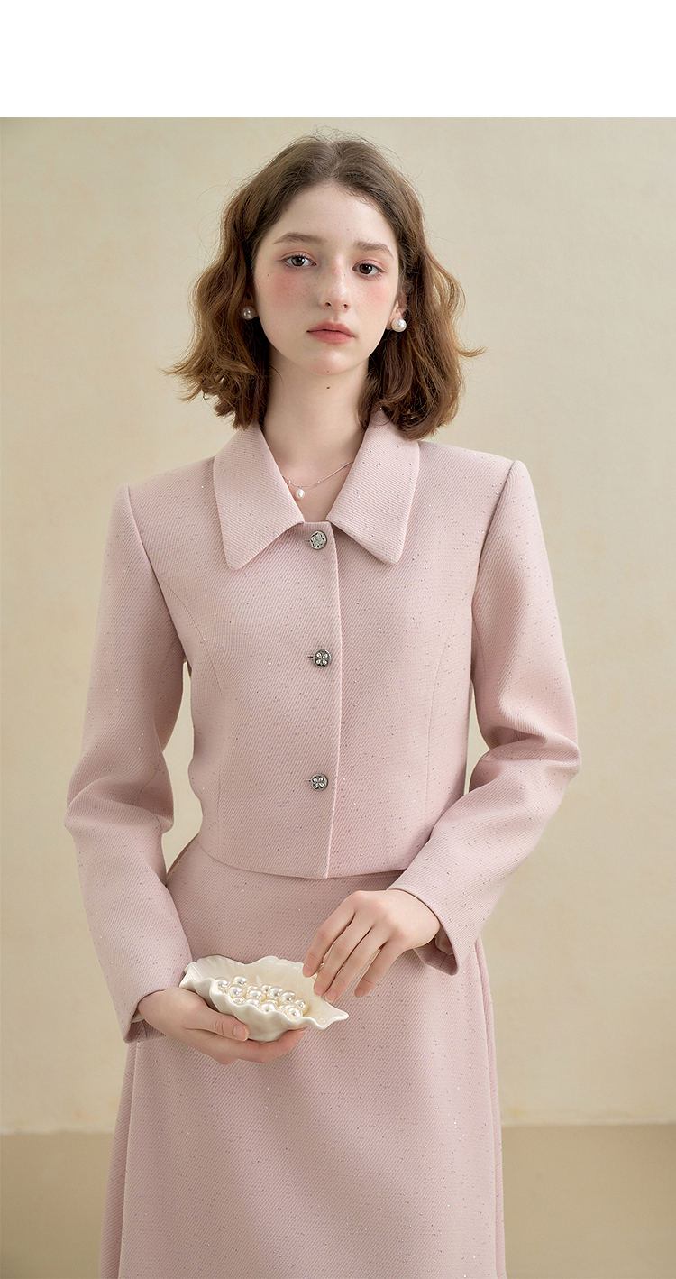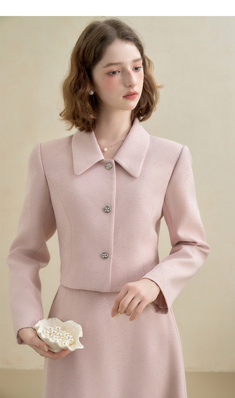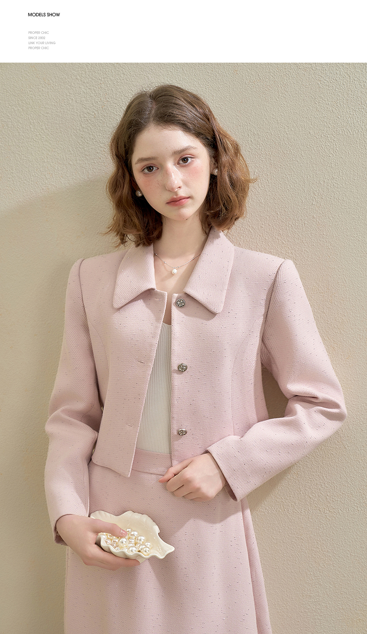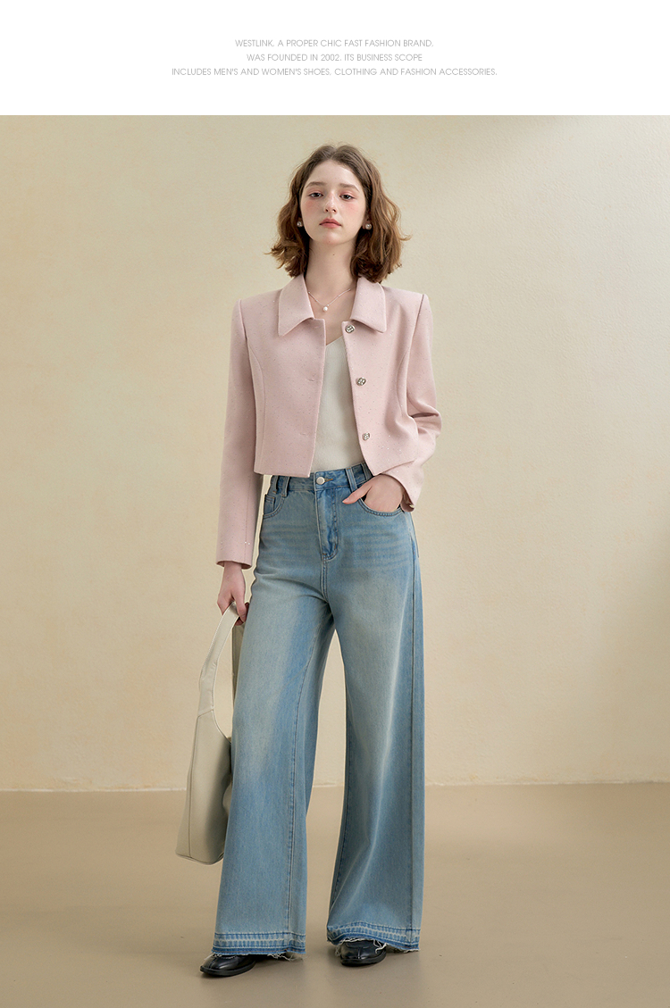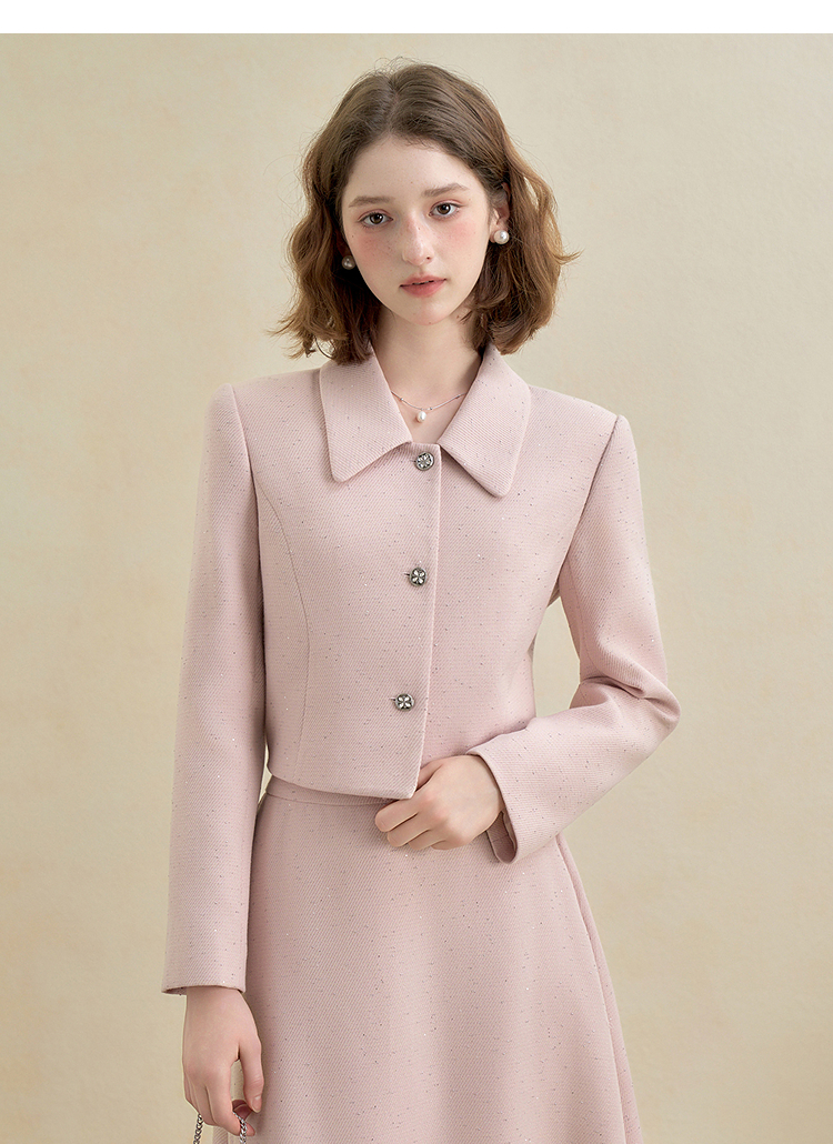 西遇法式烫钻名媛小香风长袖外套女秋季单排扣直筒短款上衣V2951177