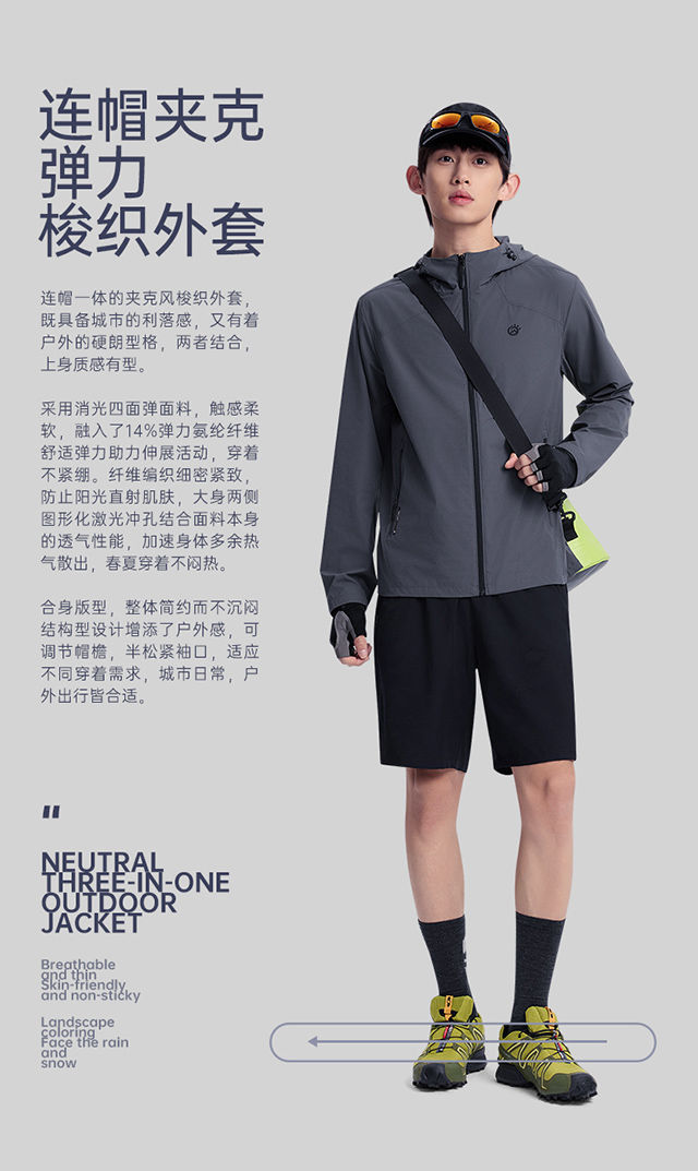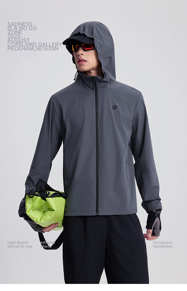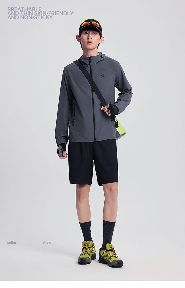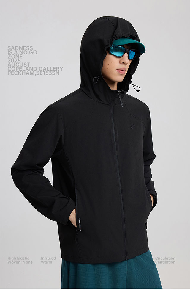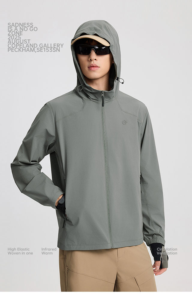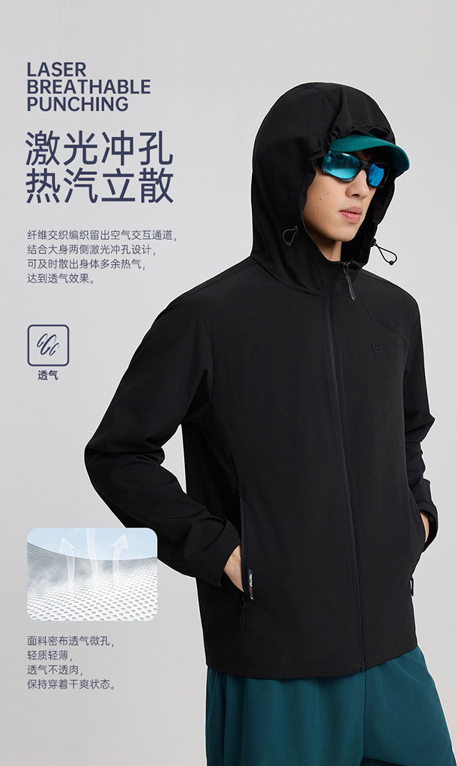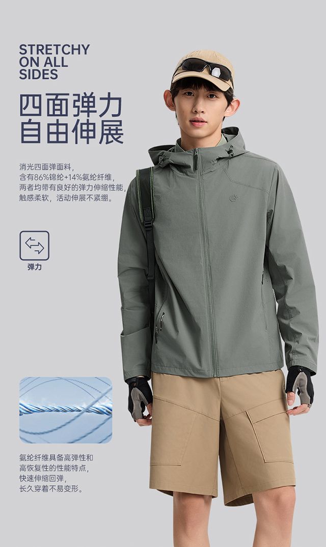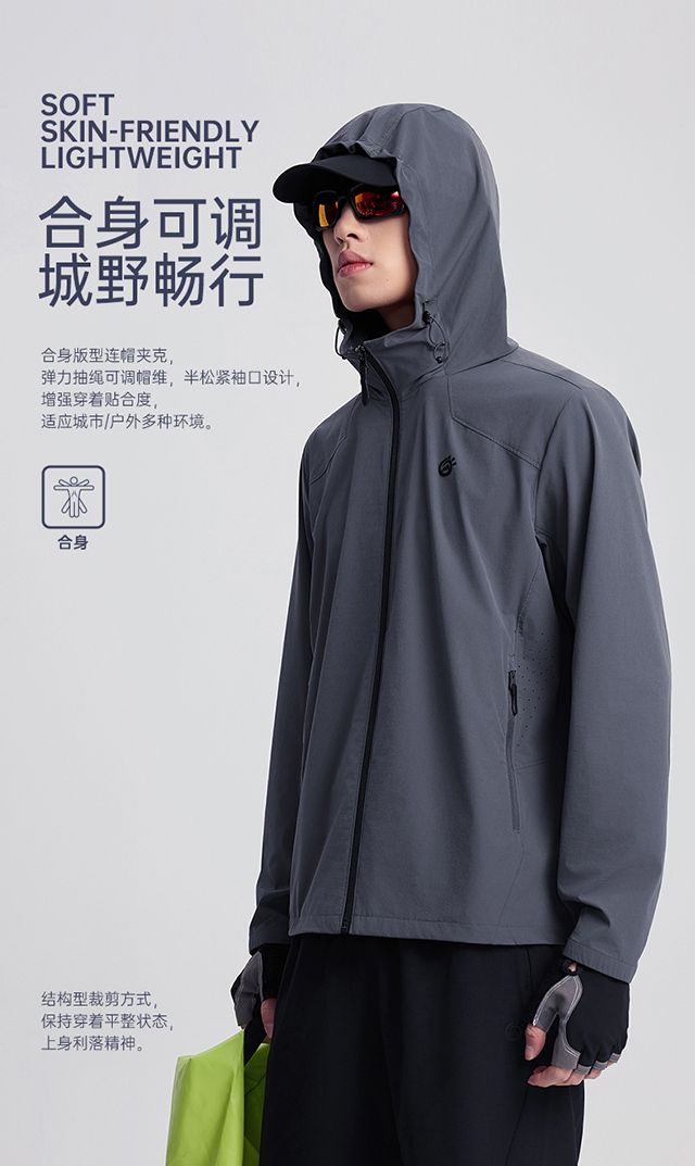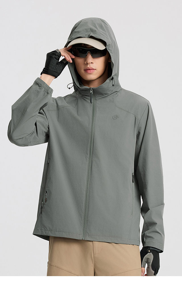 探拓轻薄运动夹克男春秋季透气户外登山徒步连帽夏山系软壳衣外套