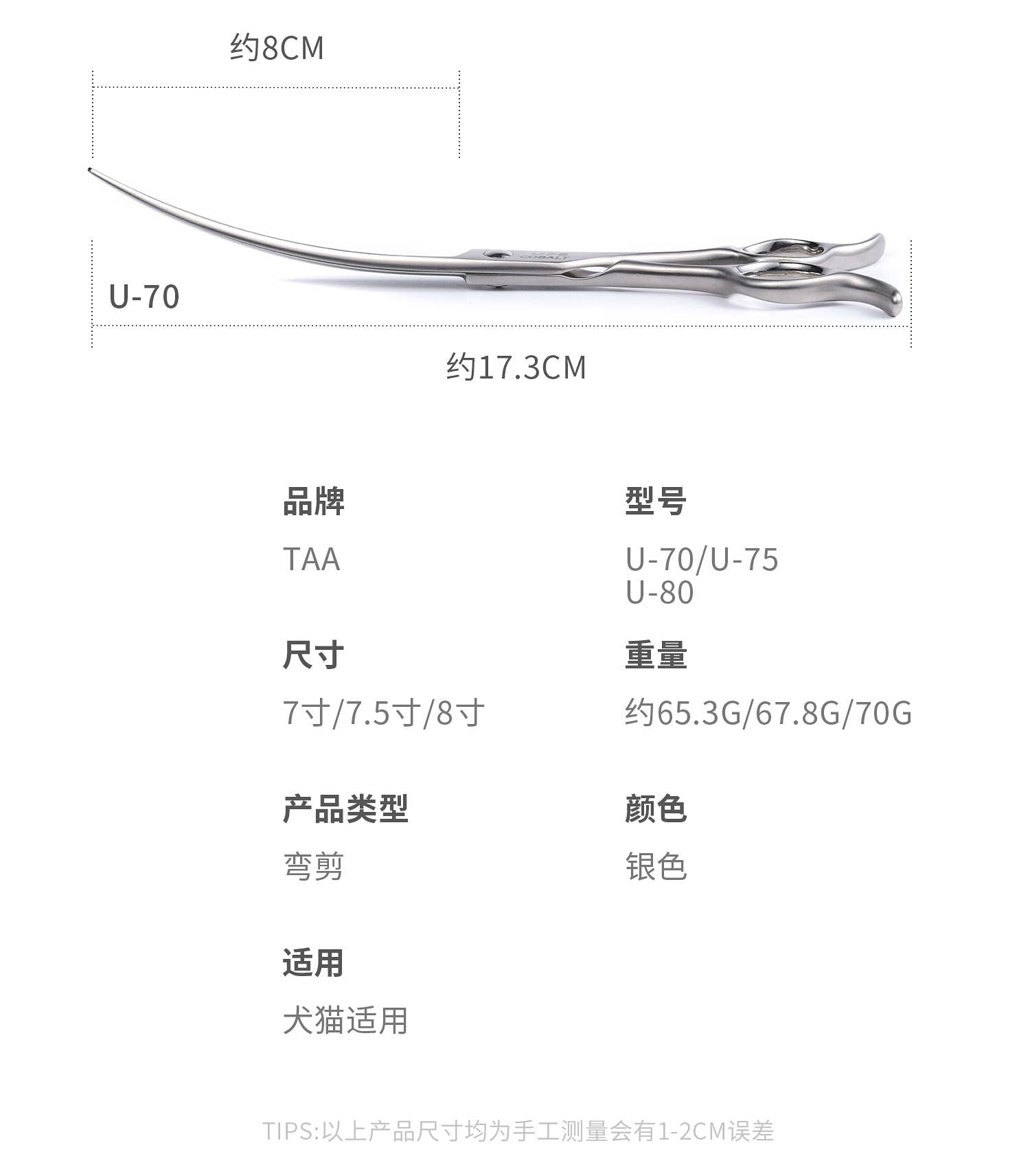 TAA它它专业宠物美容大弯剪U-65/U-70/U-75/U-80修圆