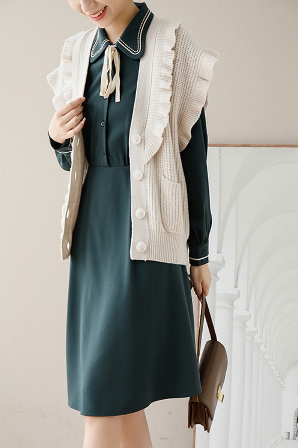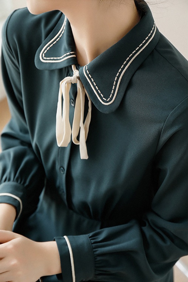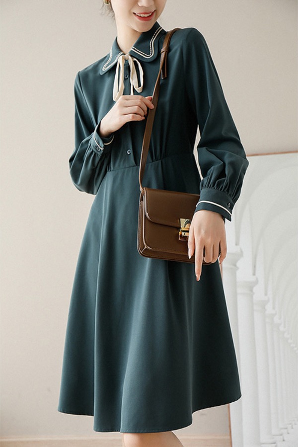 amadella 娃娃领蝴蝶结翻领收腰连衣裙 17646