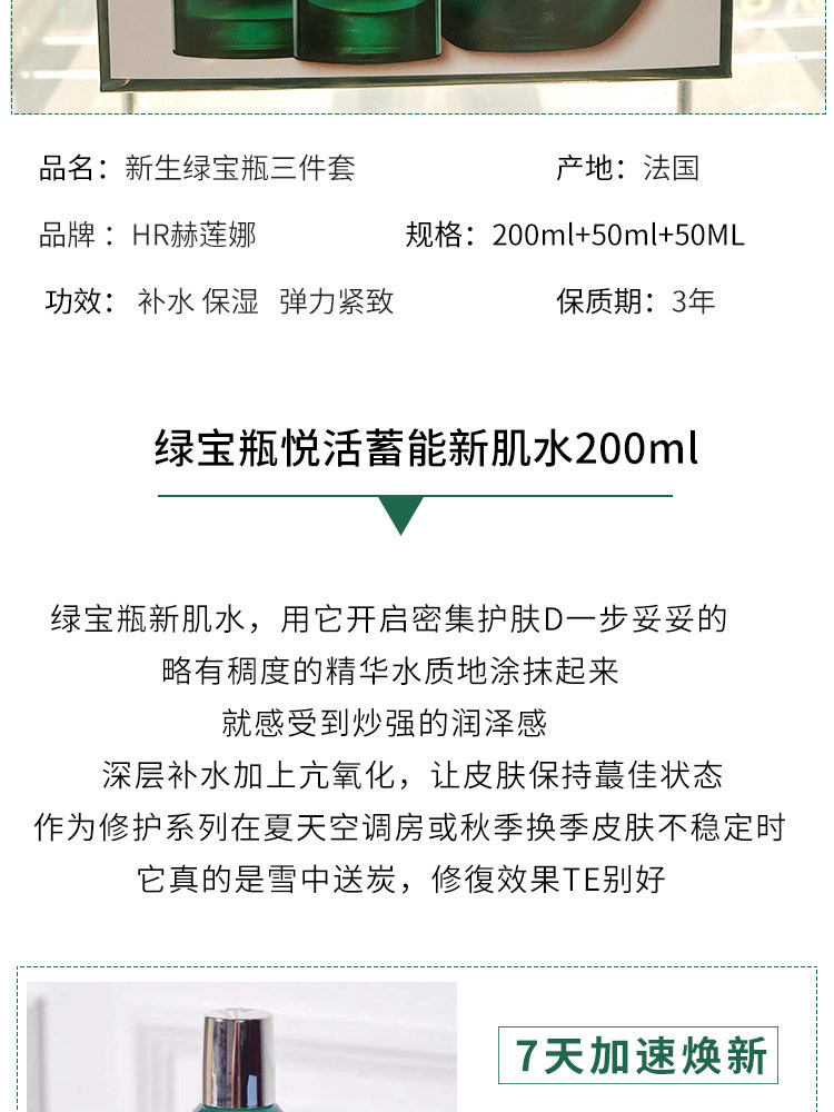 赫莲娜HR绿宝瓶精华50ml保湿舒缓修护护肤品化妆品礼盒
