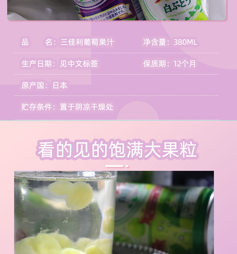 日本 SANGARIA三佳丽 限定款果粒紫葡萄汁饮料 380g(021229)