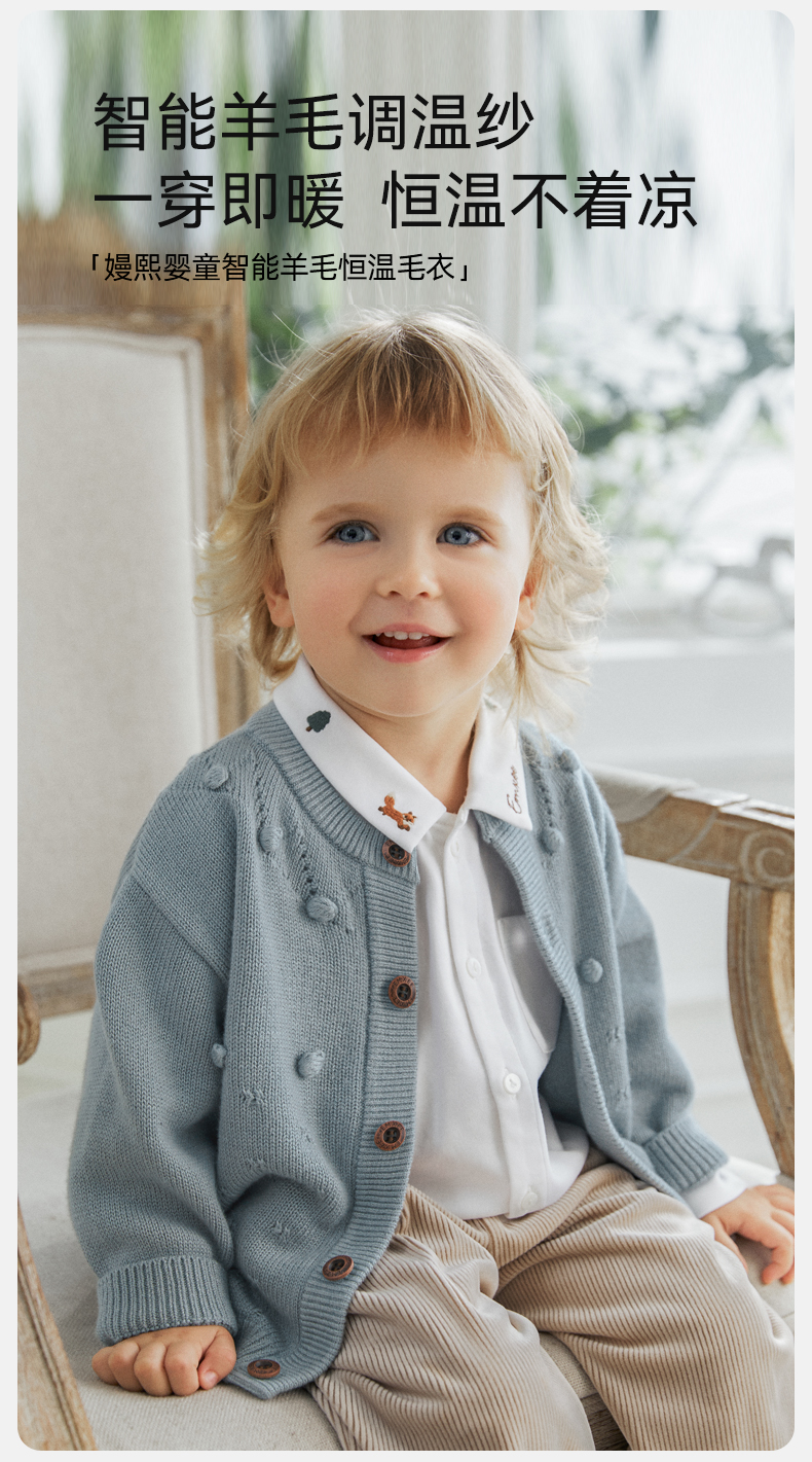 【宝宝服饰】嫚熙婴童秋季毛织开衫毛衣新款男女宝宝羊毛保暖外套儿童上衣