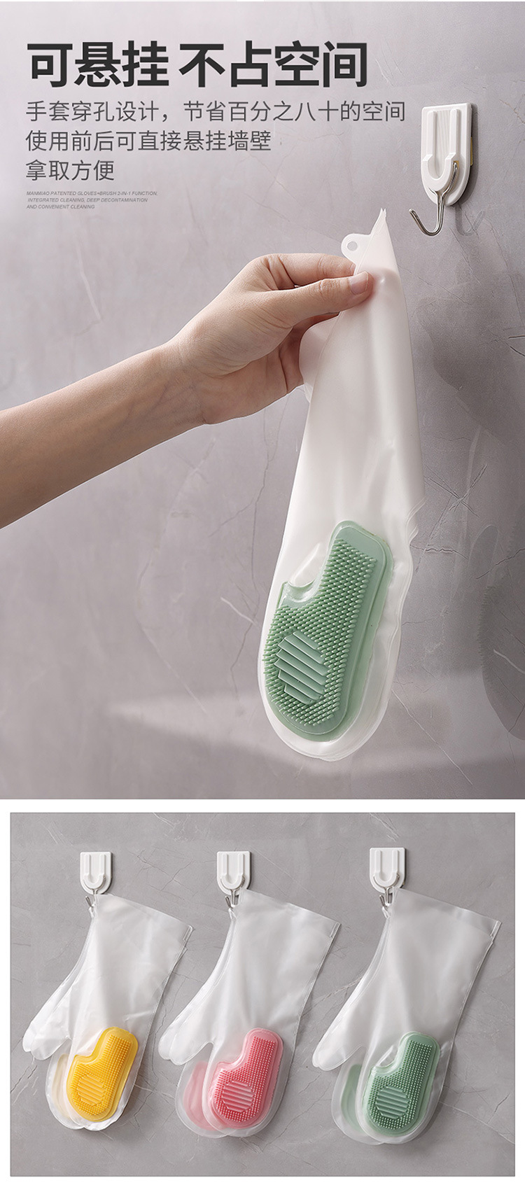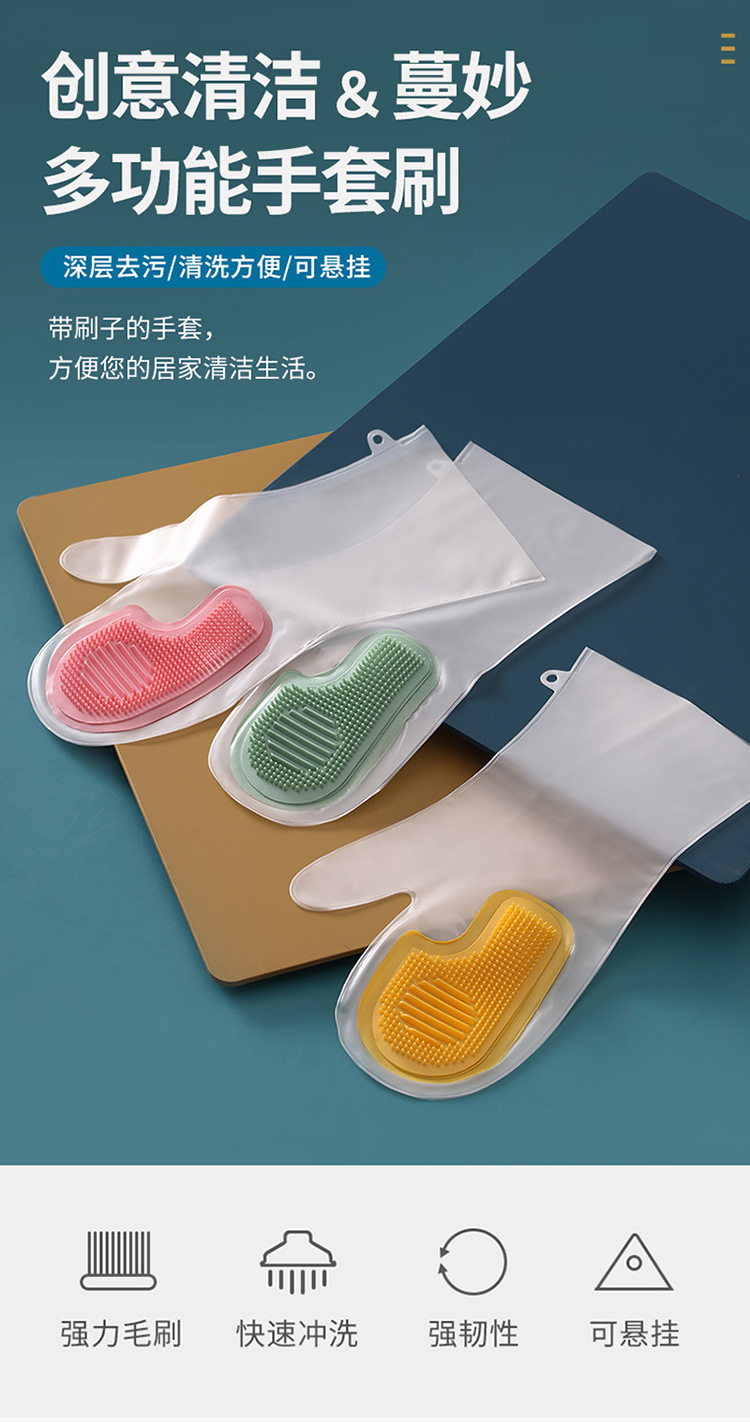 【厨房好帮手!多功能魔术刷!】突破居家清洁烦恼,多功能魔术刷手套轻松解决。洗菜、洗碗、擦家具、刷锅煮饭通通不难,可悬挂,便捷不占地方,还防水防滑更耐用,刷子随手可得,便民好物任您选!