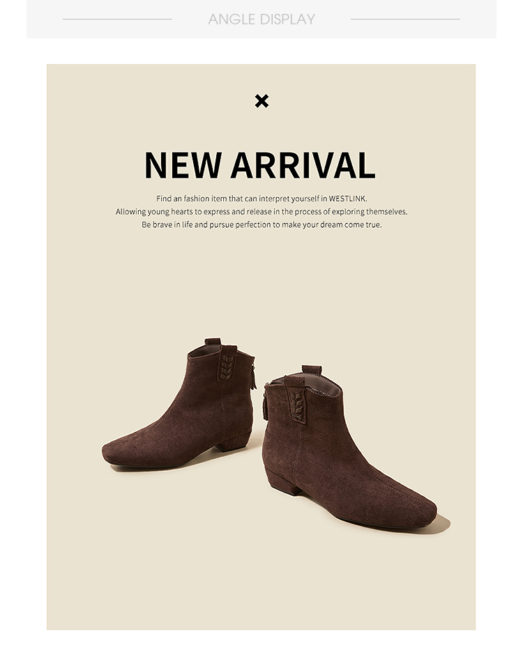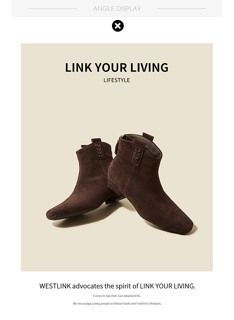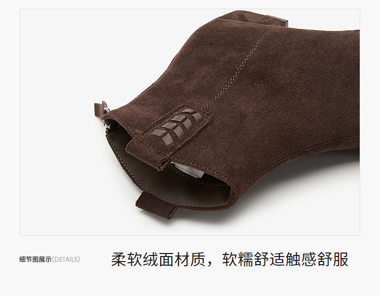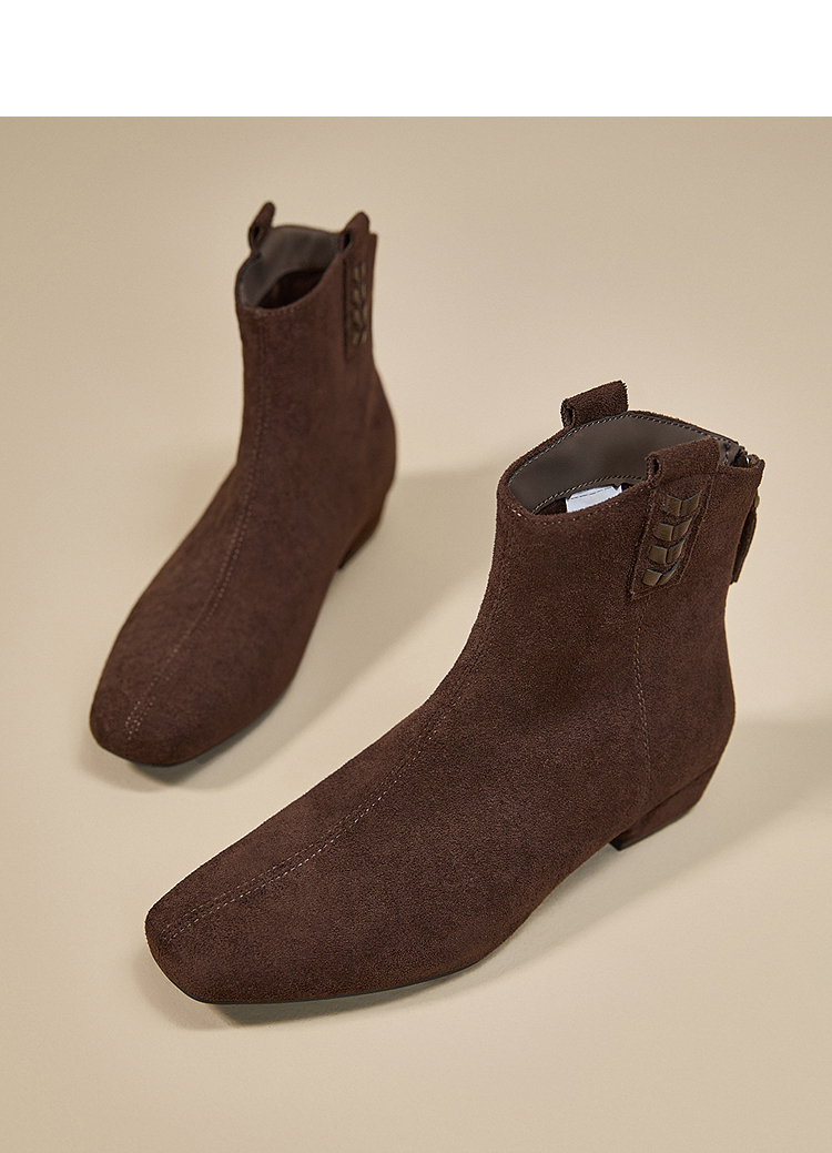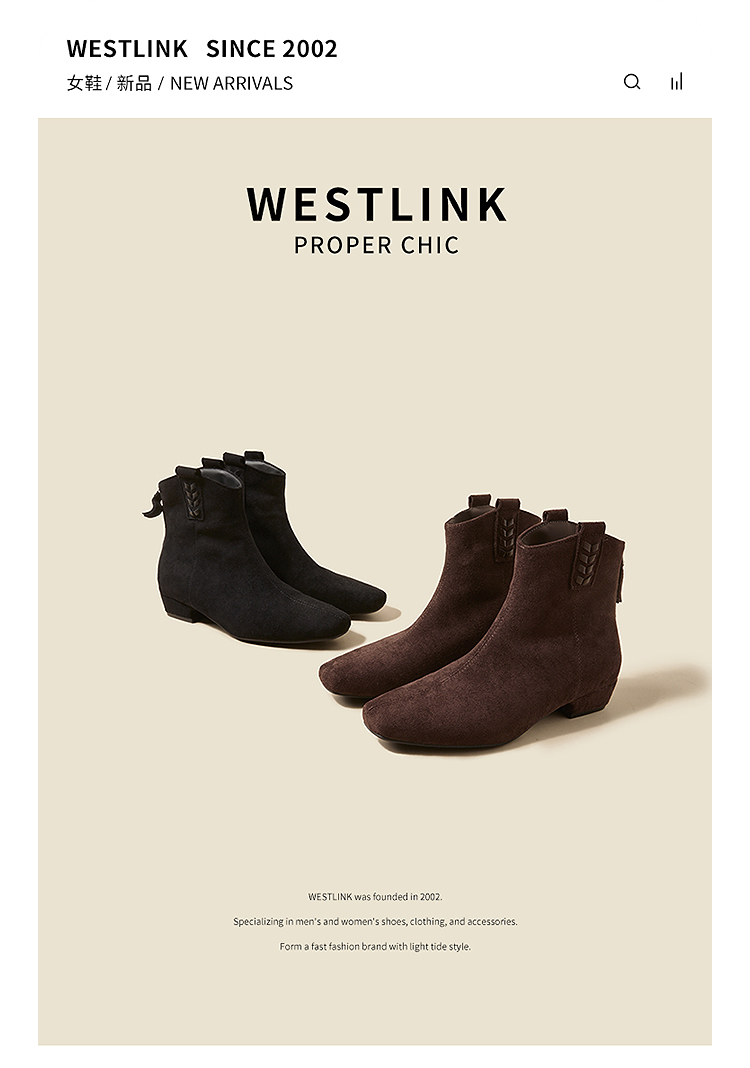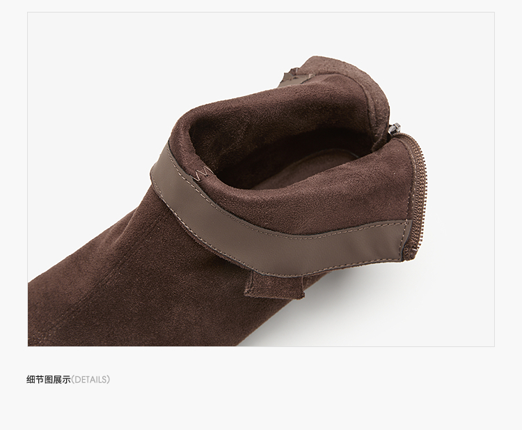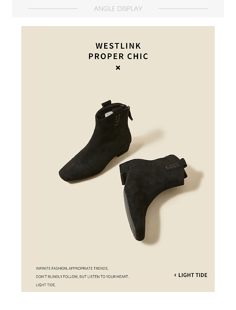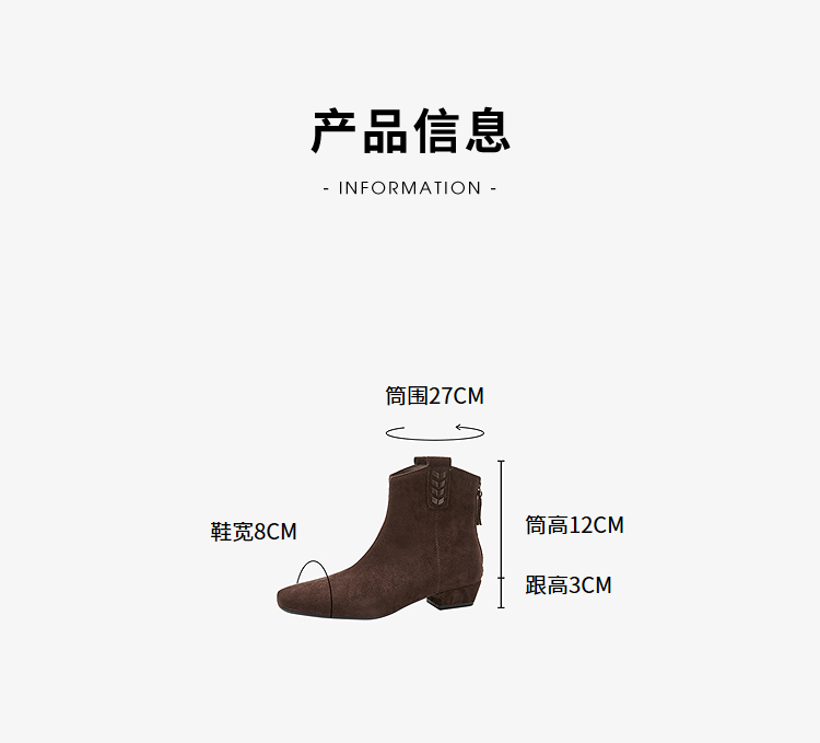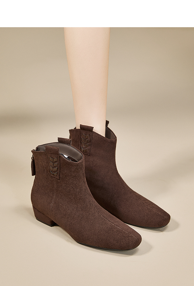 西遇方头短靴女新款秋冬法式绒面V口低跟切尔西靴黑色瘦瘦靴V2157197