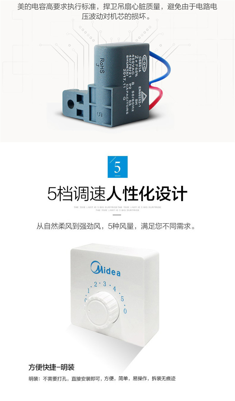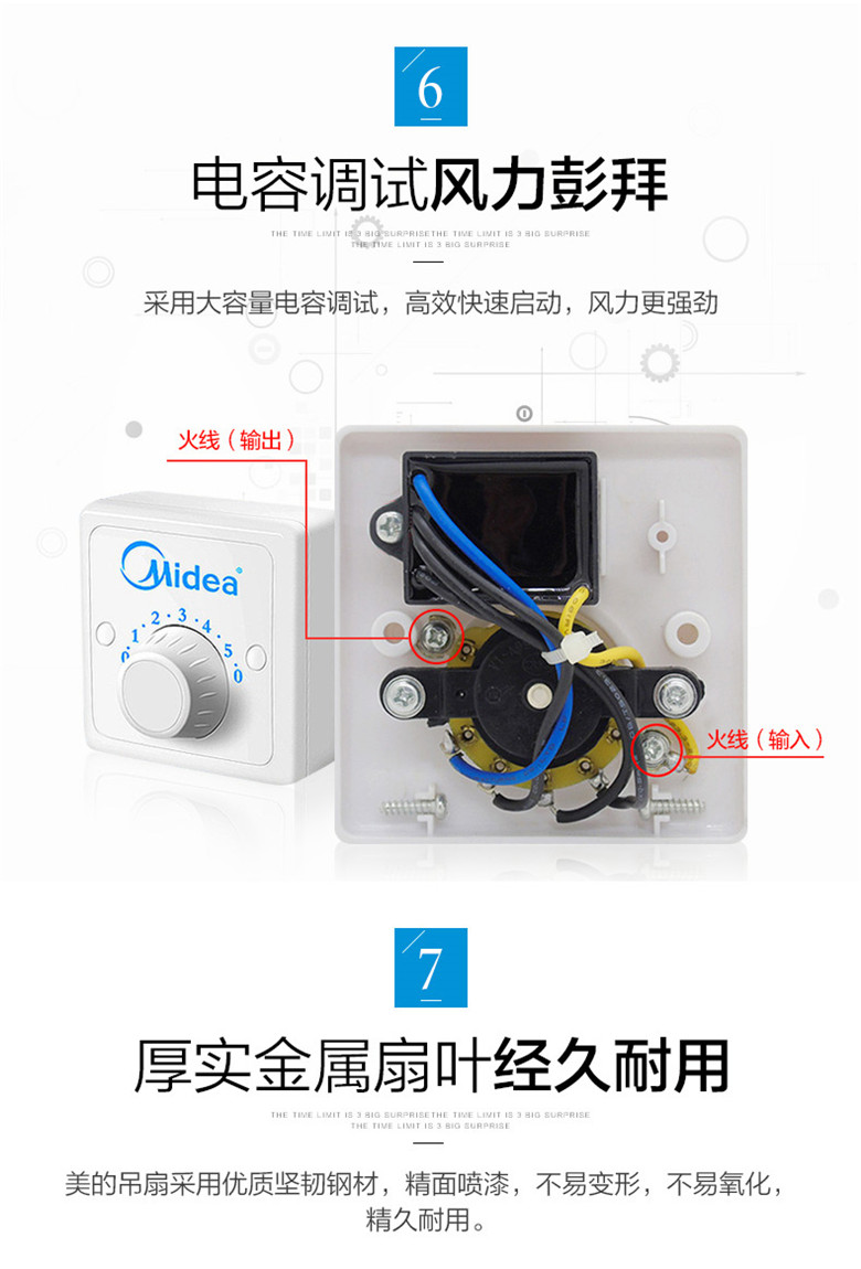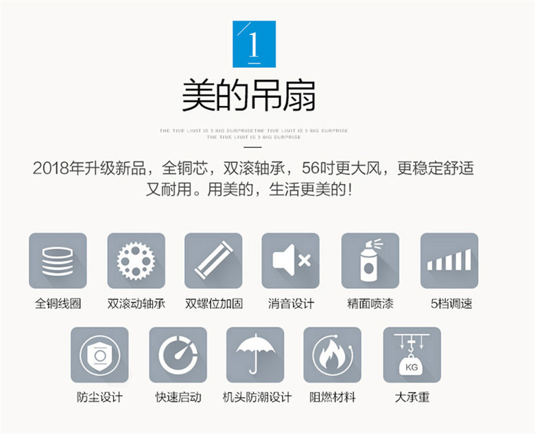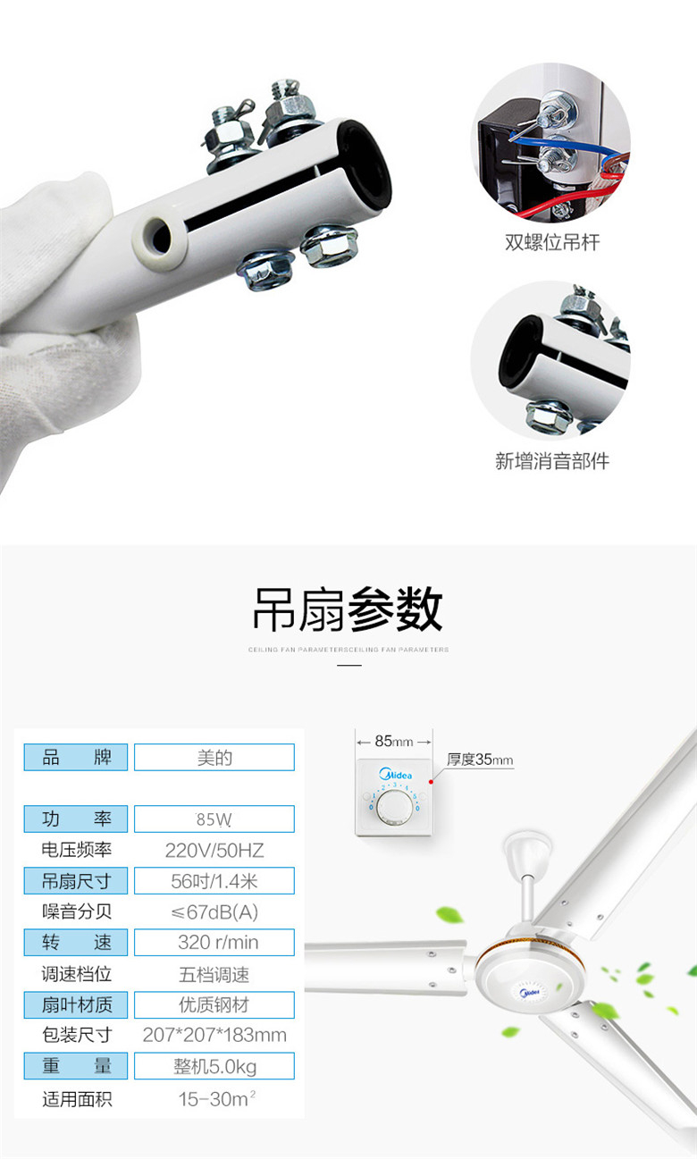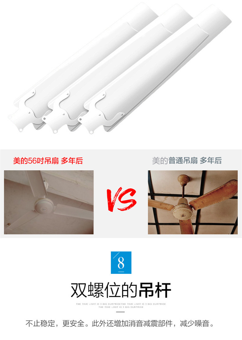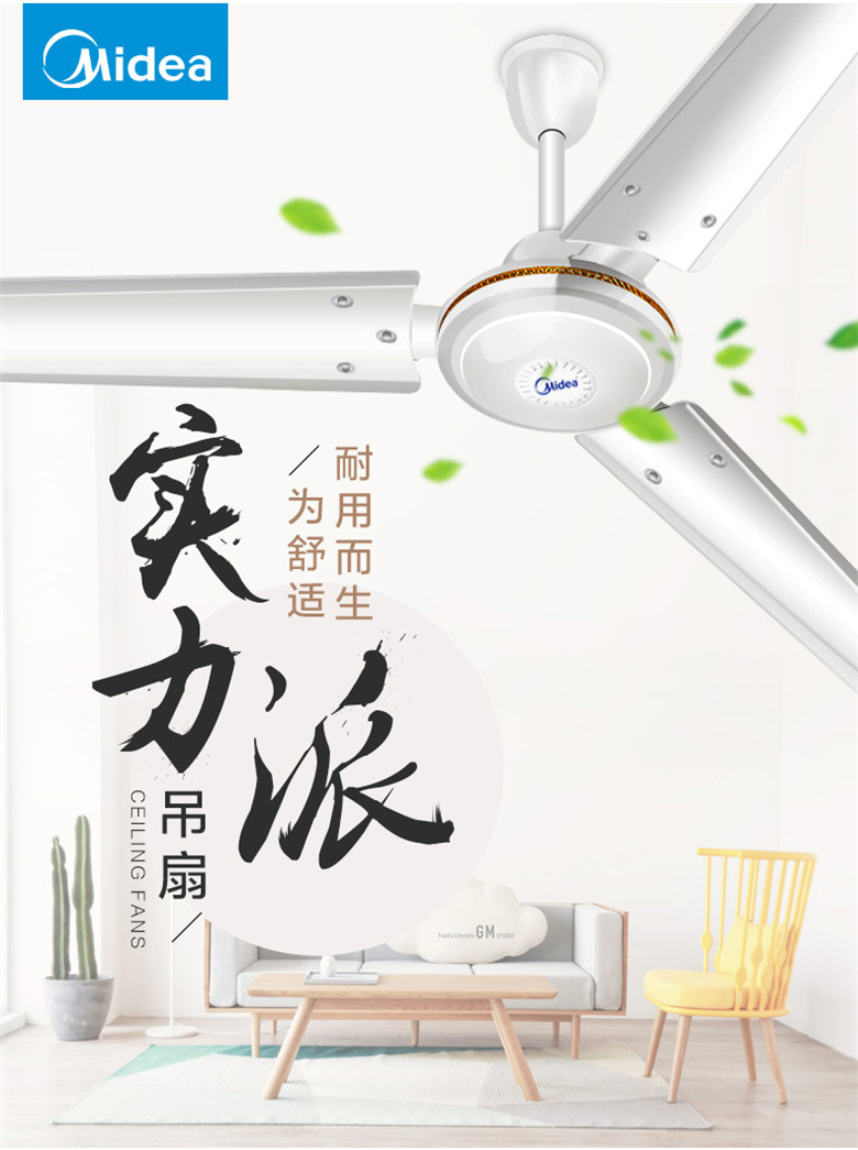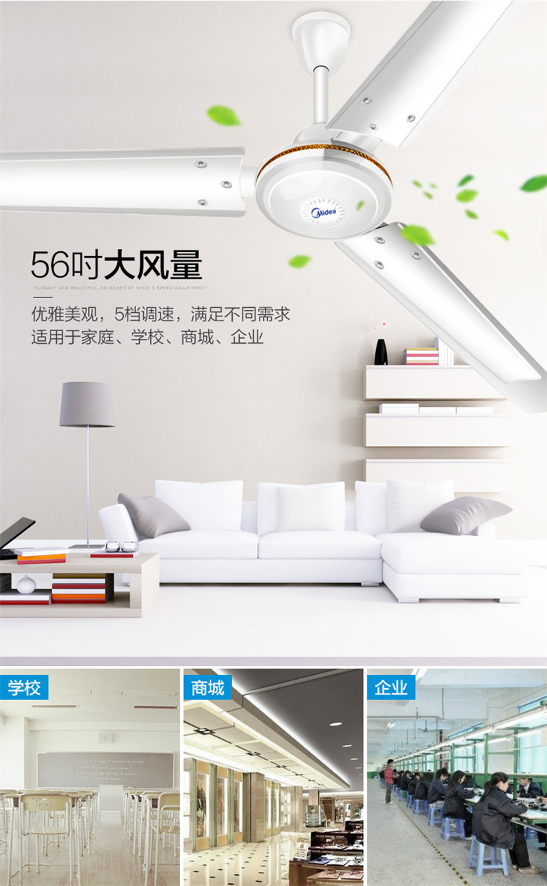 美的(Midea) FC140-BA吊扇56吋家用客厅电风扇轻音铁叶大风力宿舍工厂楼顶扇FC56 白色 (线下同款)