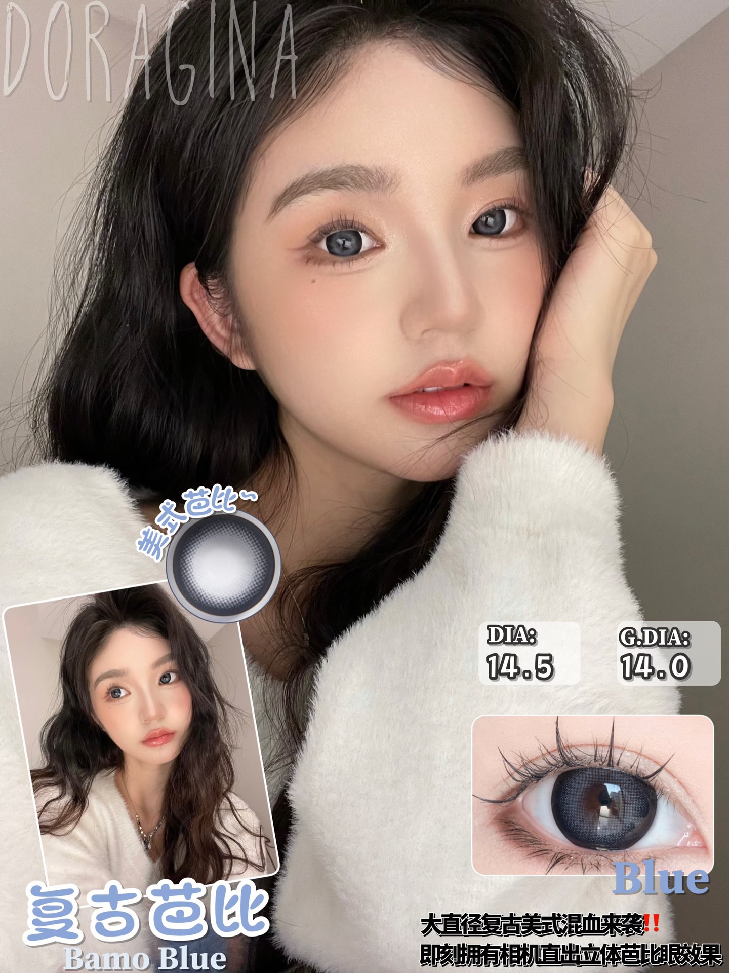 Doragina 复古芭比 年抛 两片 14.5mm 参考着色 14.0mm 基弧 8.6 含水 38% 韩国进口