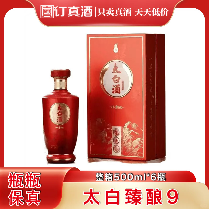 陕西太白酒业太白臻酿9 52度柔顺凤香型白酒 整箱500ml*6瓶包邮