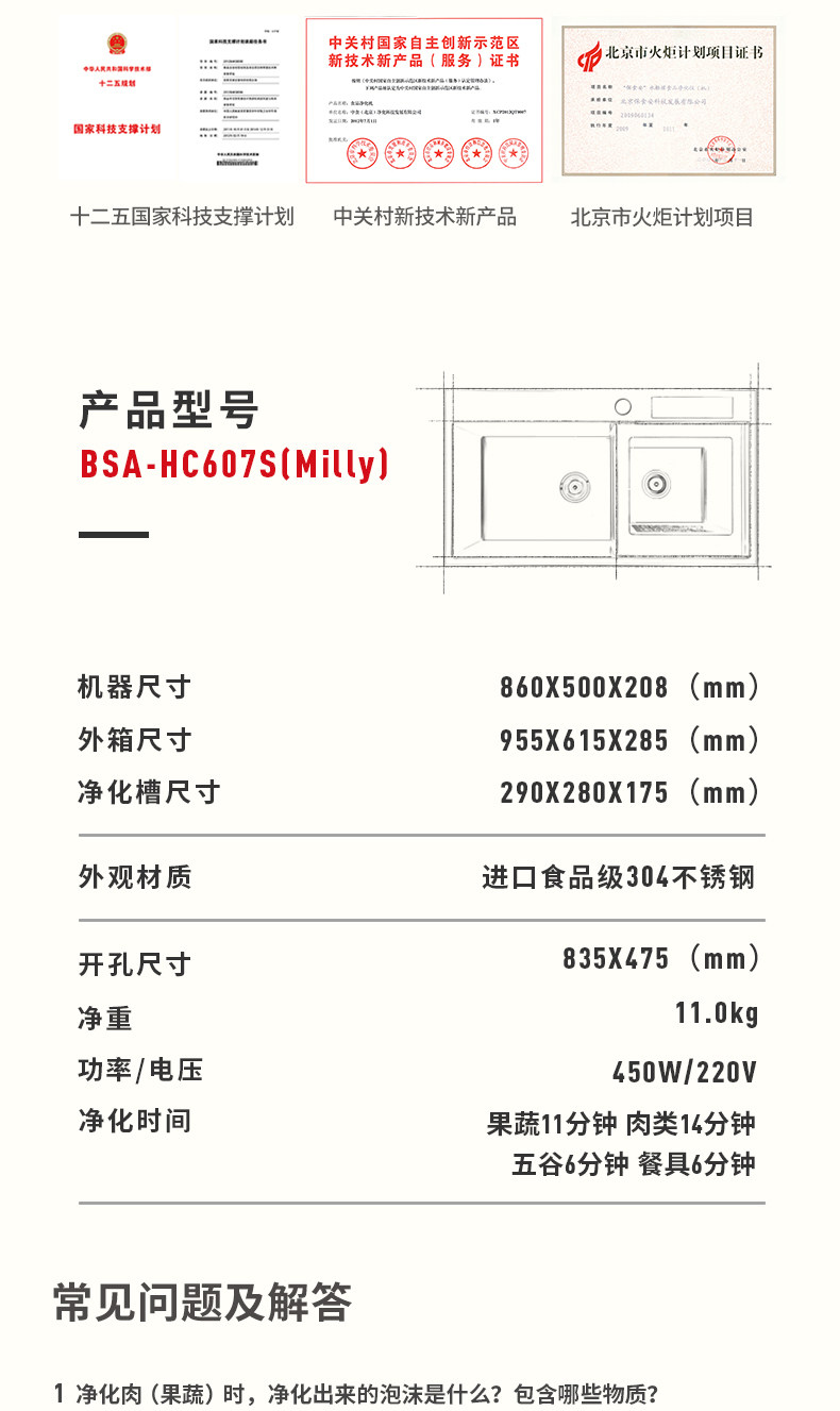 禾莯果蔬净化机解毒机洗菜清洗食材机食品净化水槽BSA-HC607S新品