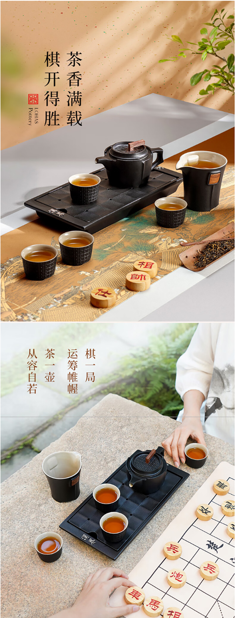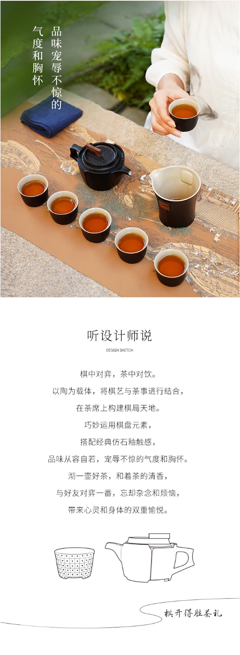 陆宝棋开得胜茶组 禅风黑1壶1海6杯