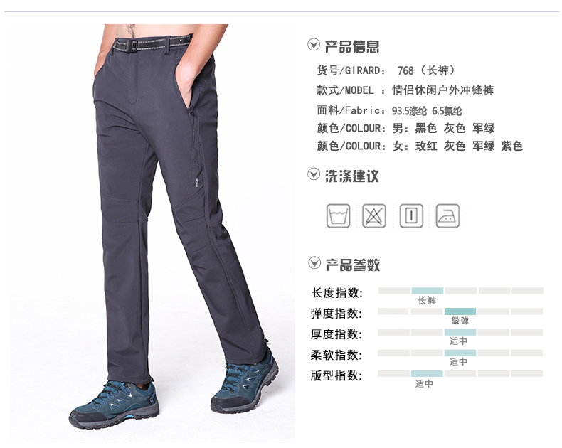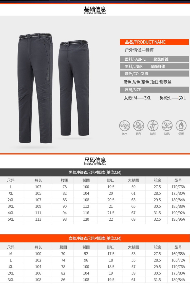 幸运鹿 情侣款加厚加绒冲锋裤768
