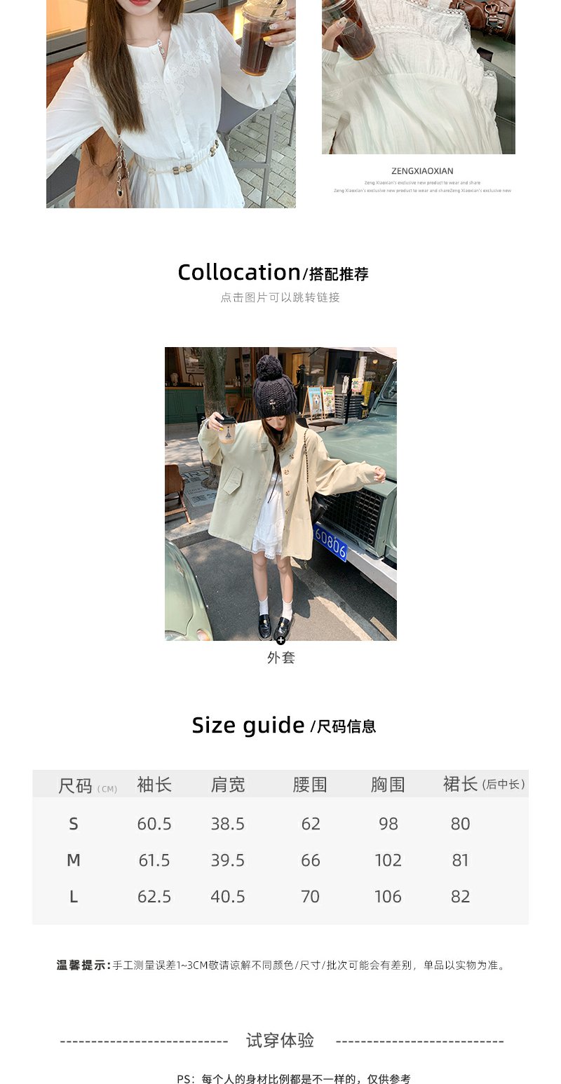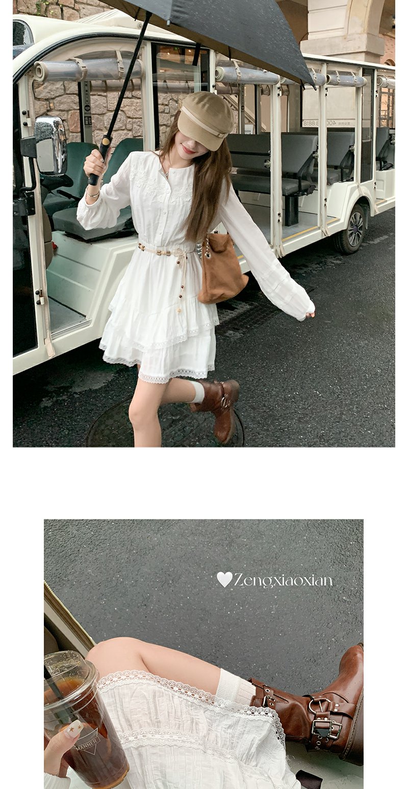 <曾小咸推荐>蕾丝拼接不规则下摆A字连衣裙女