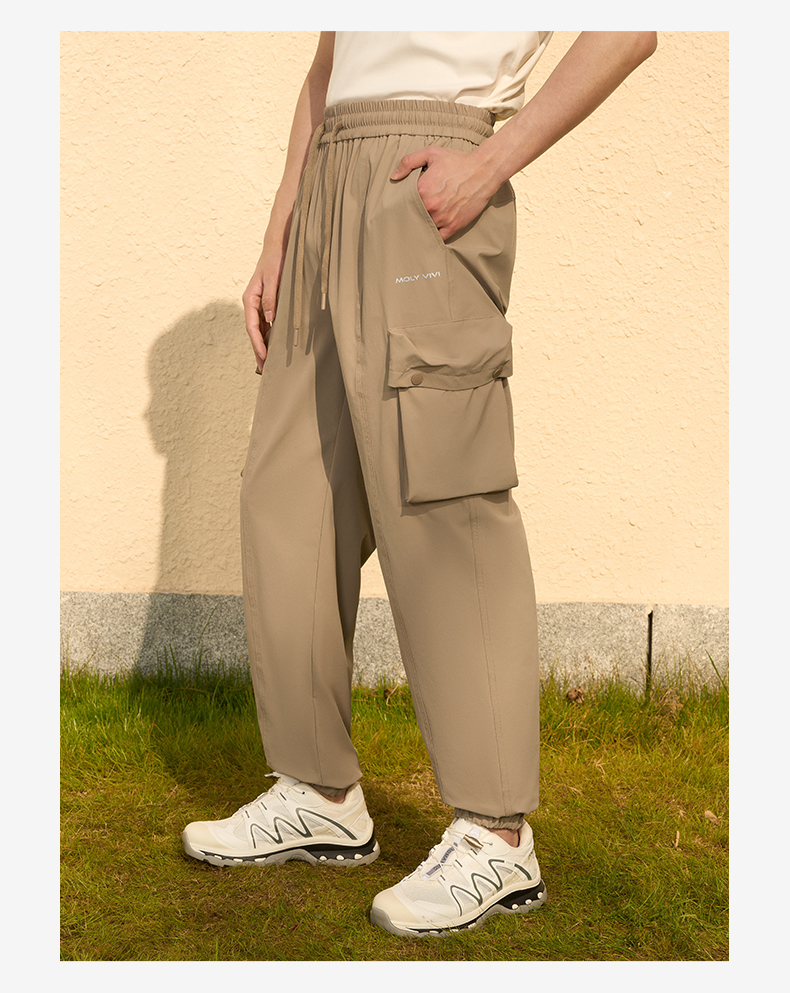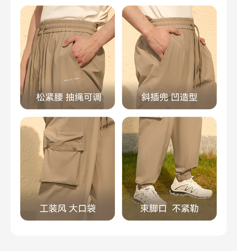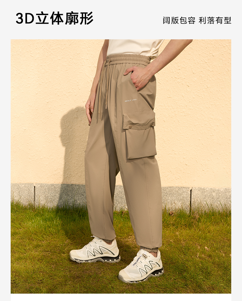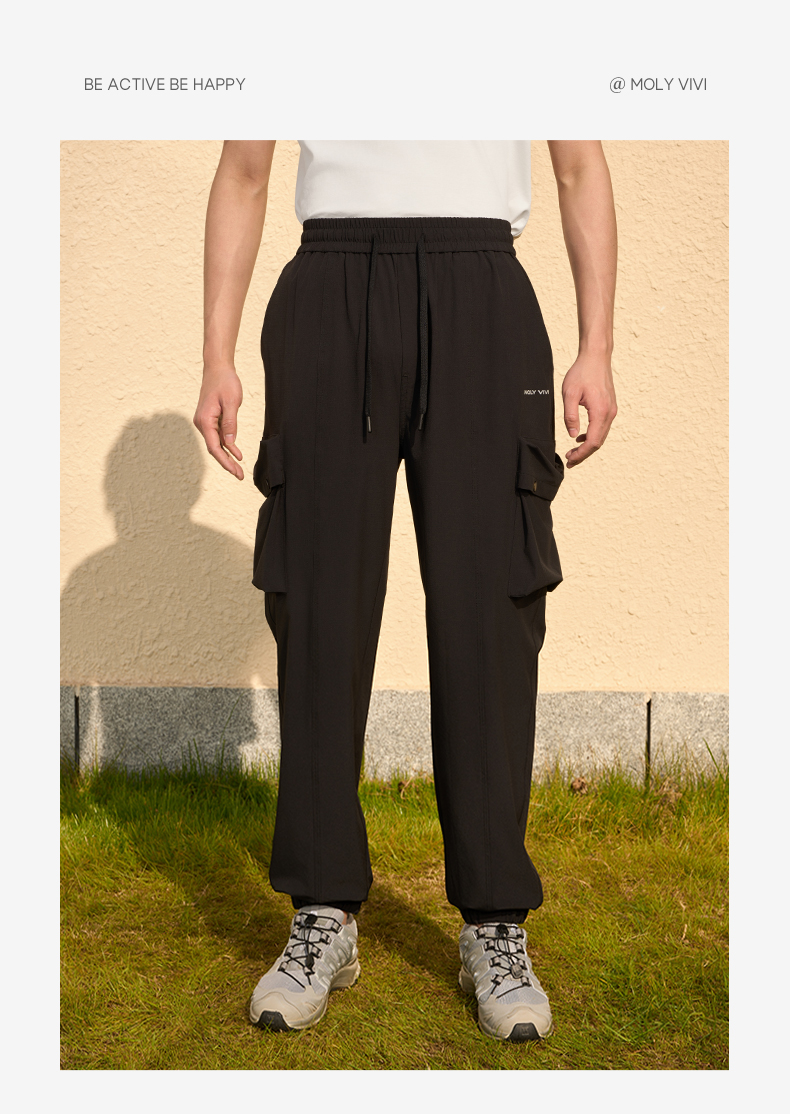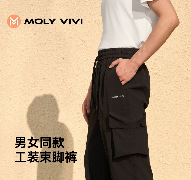 MOLYVIVI工装风男士束脚裤2024春夏新款抽绳宽松口袋长裤运动休闲裤