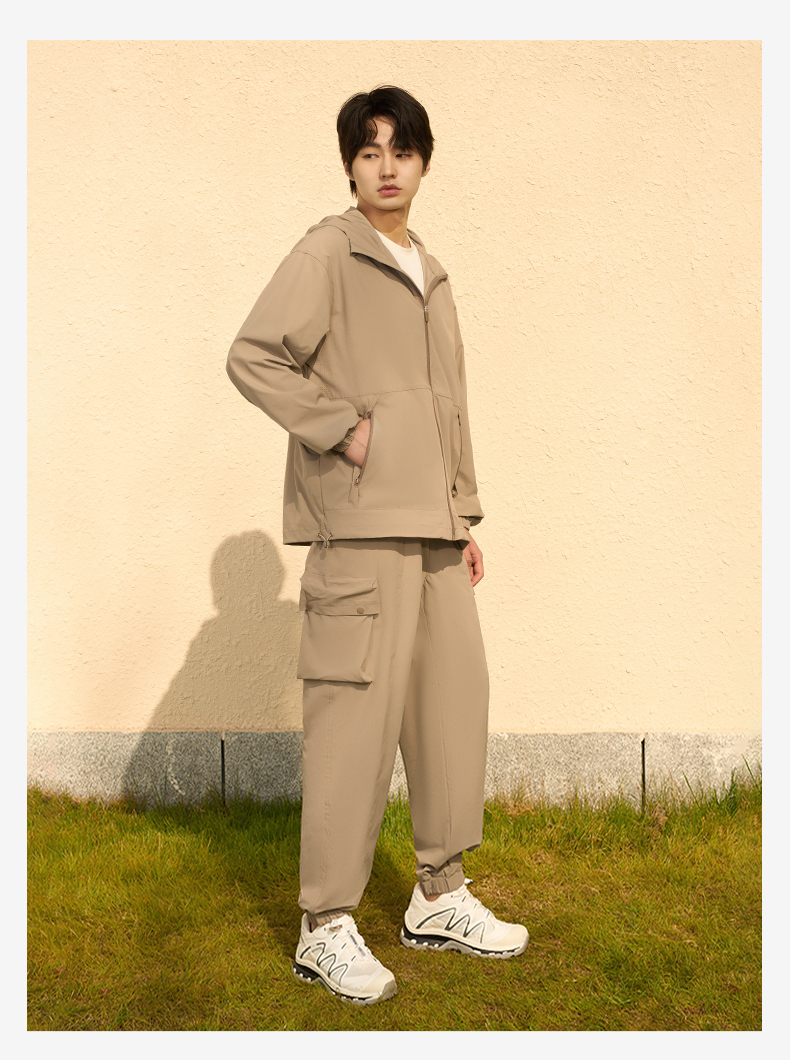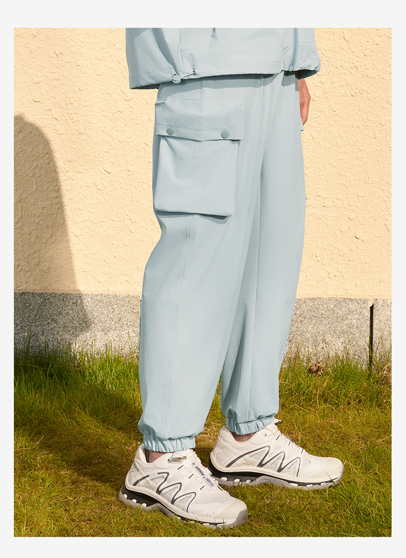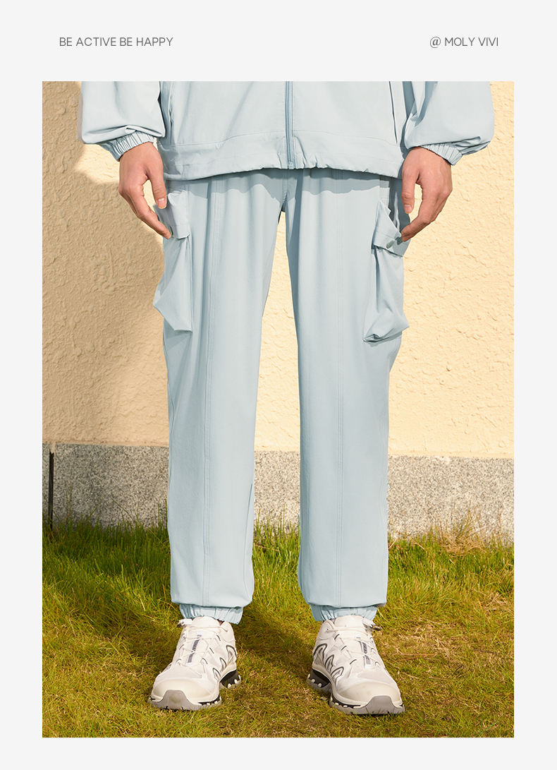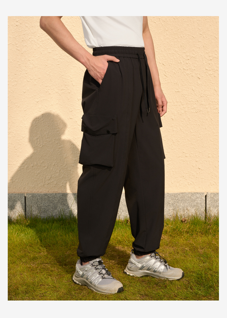 MOLYVIVI工装风男士束脚裤2024春夏新款抽绳宽松口袋长裤运动休闲裤