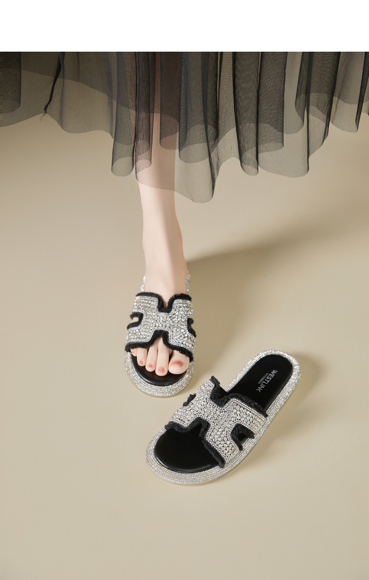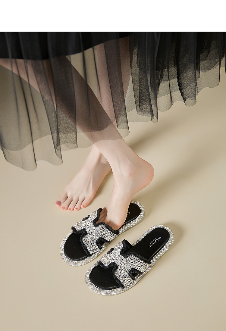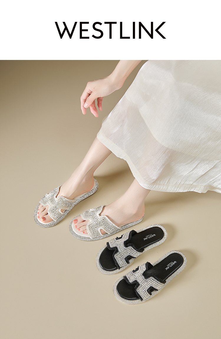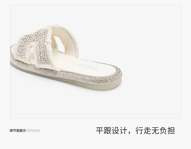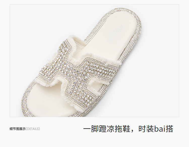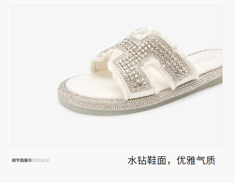 西遇水钻凉拖鞋女夏季外穿新款法式绝美配裙子凉鞋平底一字拖V1156803