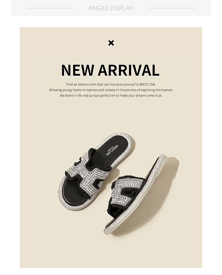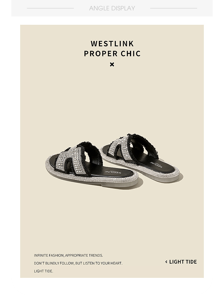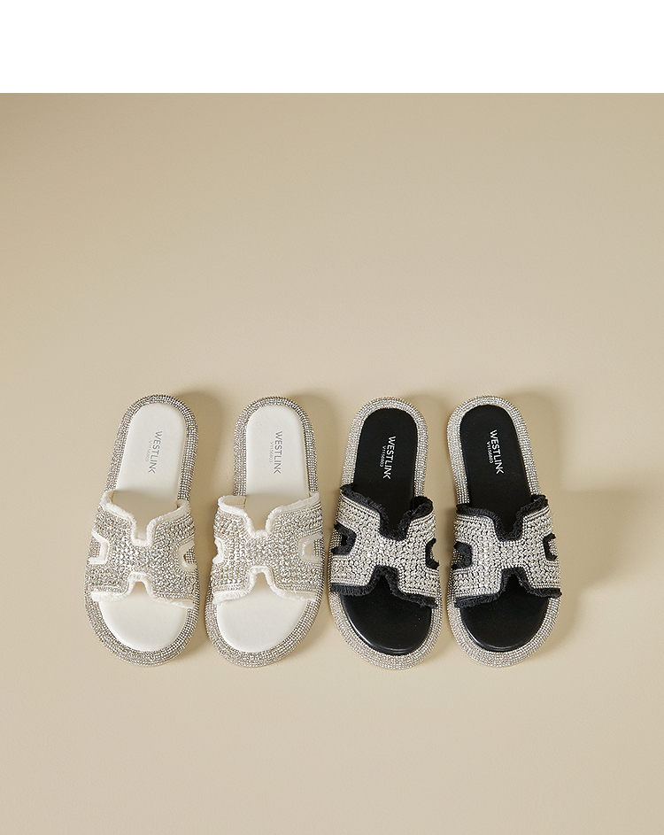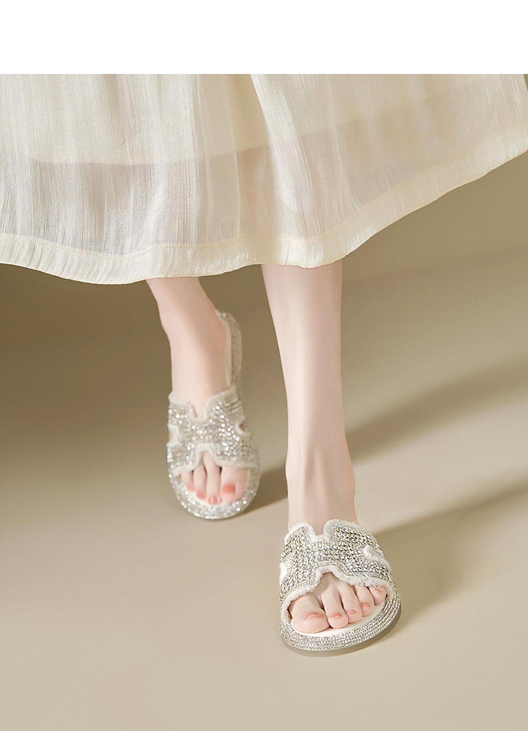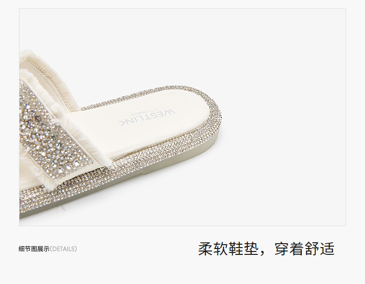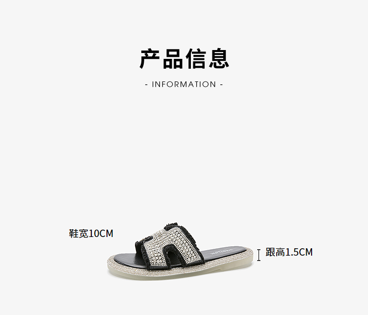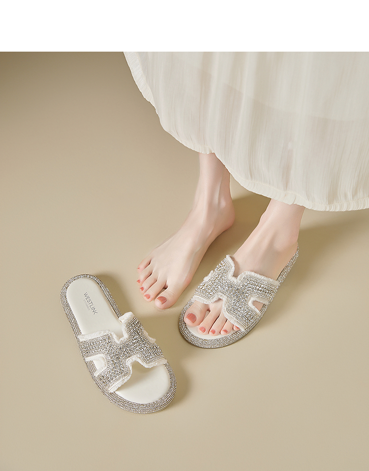 西遇水钻凉拖鞋女夏季外穿新款法式绝美配裙子凉鞋平底一字拖V1156803