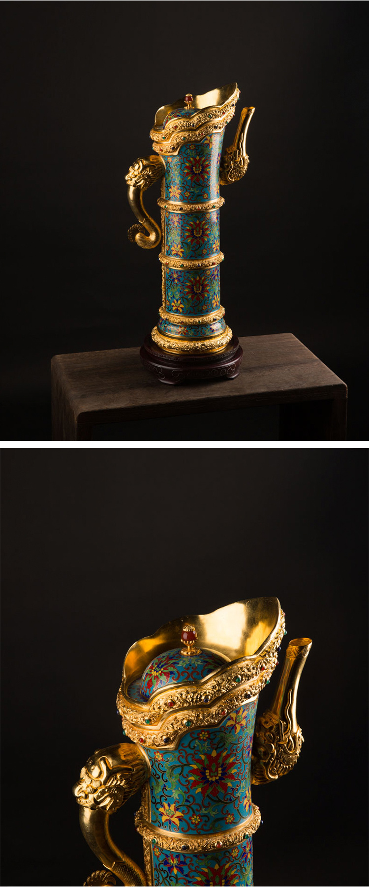 故宫六珍之《掐丝珐琅缠枝莲纹多穆壶》
