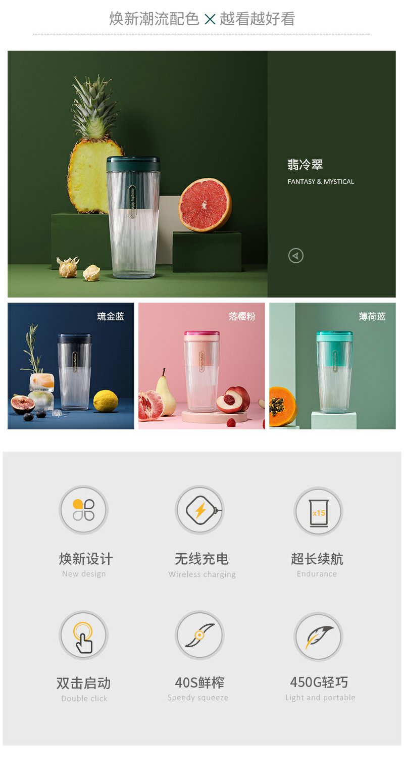 摩飞榨汁杯充电迷你果汁杯小型便携式果汁家用水果榨汁MR9800