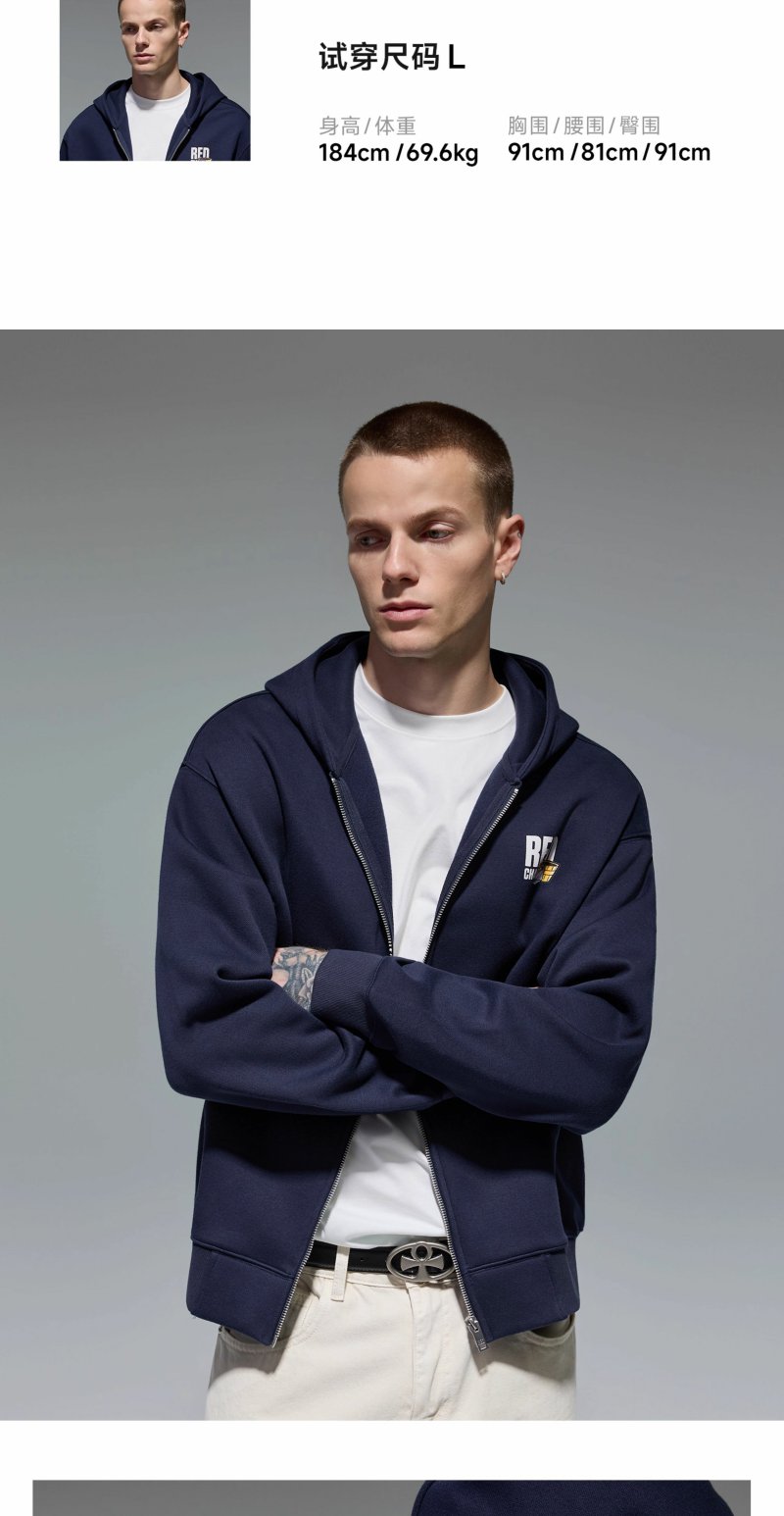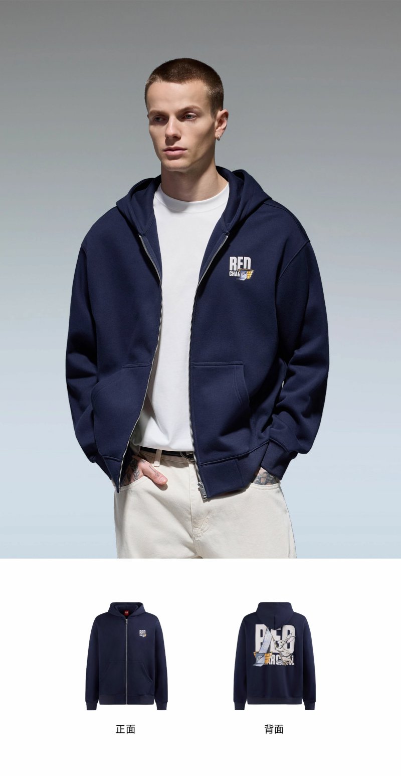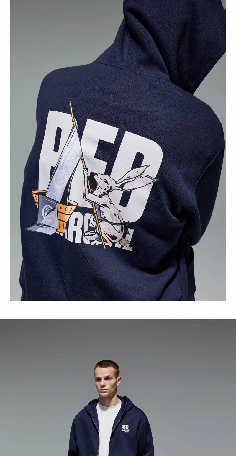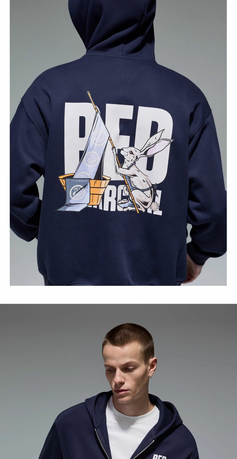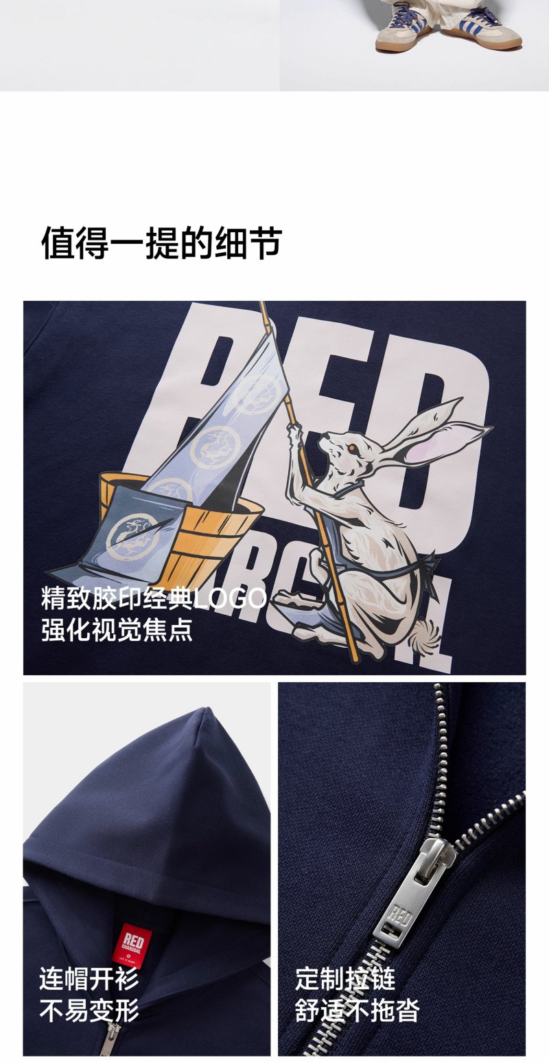 REDCHARCOAL 红炭藏青色兔子开衫连帽卫衣男秋季新款潮牌男士外套