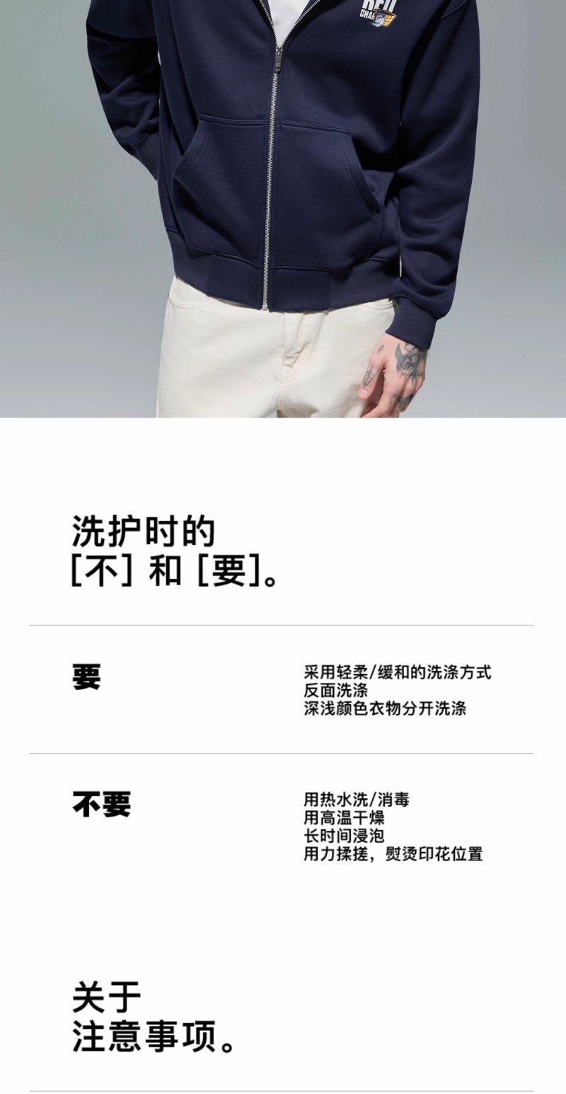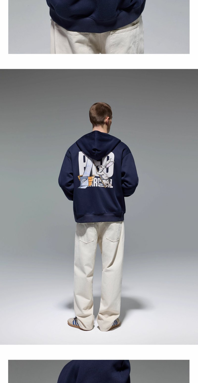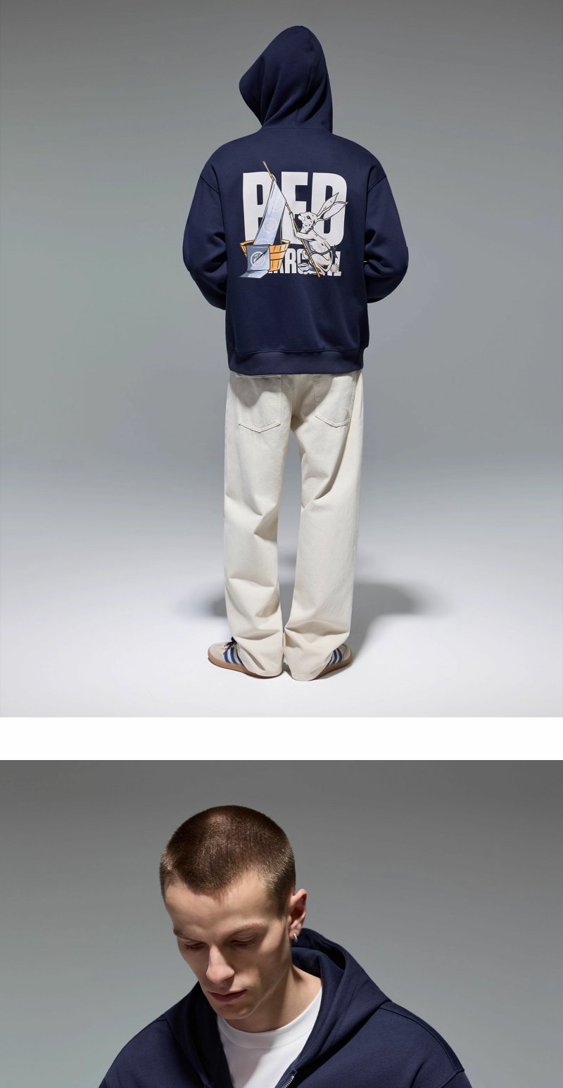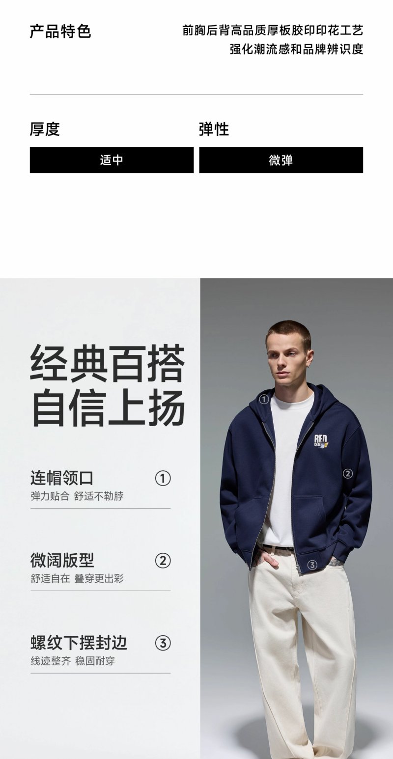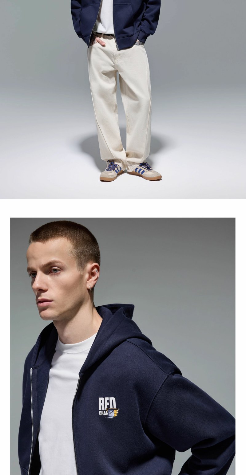 REDCHARCOAL 红炭藏青色兔子开衫连帽卫衣男秋季新款潮牌男士外套