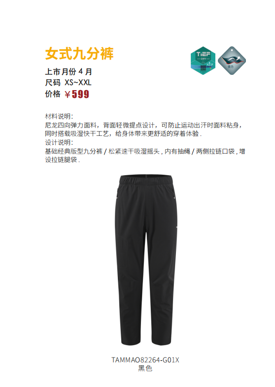 探路者女式松紧九分裤休闲裤TAMMAO82264