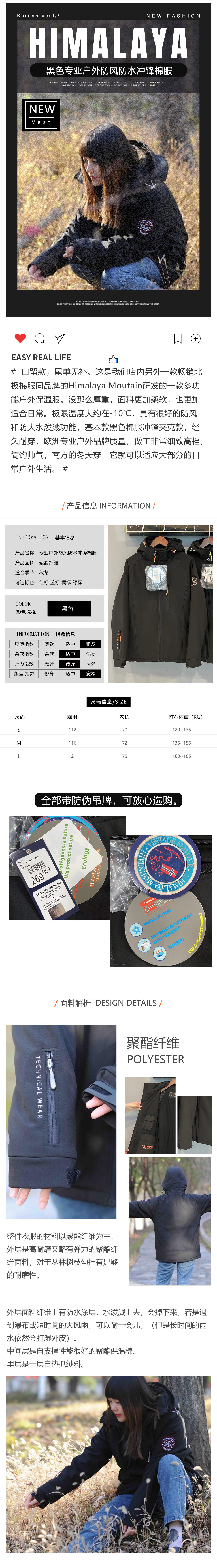 (自留款,尾单无补)Himalaya黑色专业户外防风防水冲锋棉服夹克男士保暖冬装